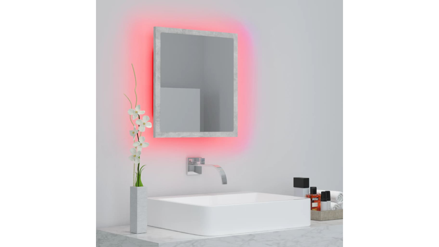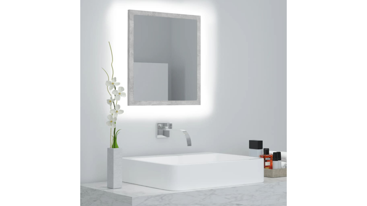 NNEVL LED Backlit Bathroom Mirror 40 x 8.5 x 37cm - Concrete Grey