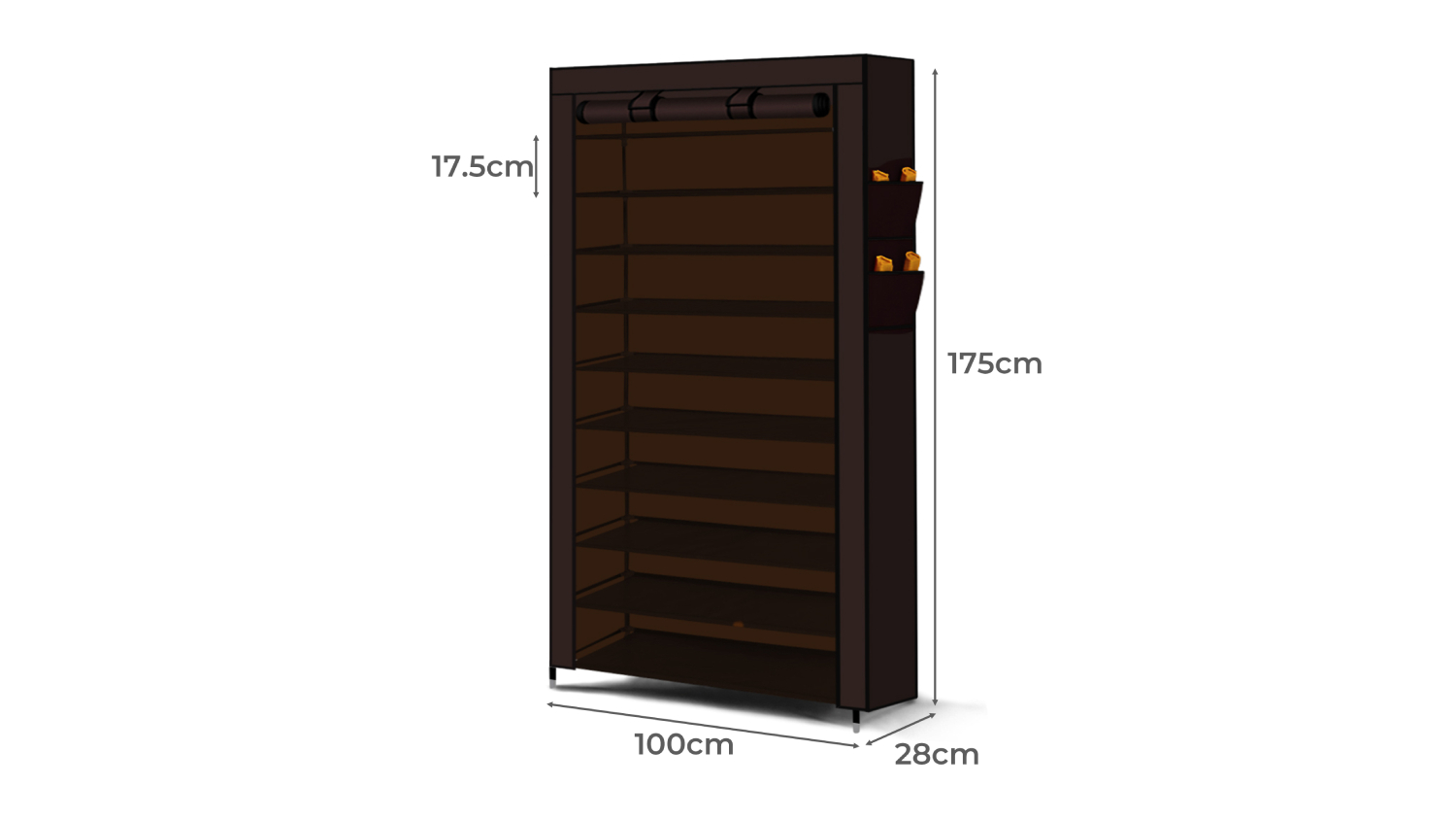 Levede 10 Tier Canvas Shoe Cabinet with Storage Pockets 2pcs. - Brown