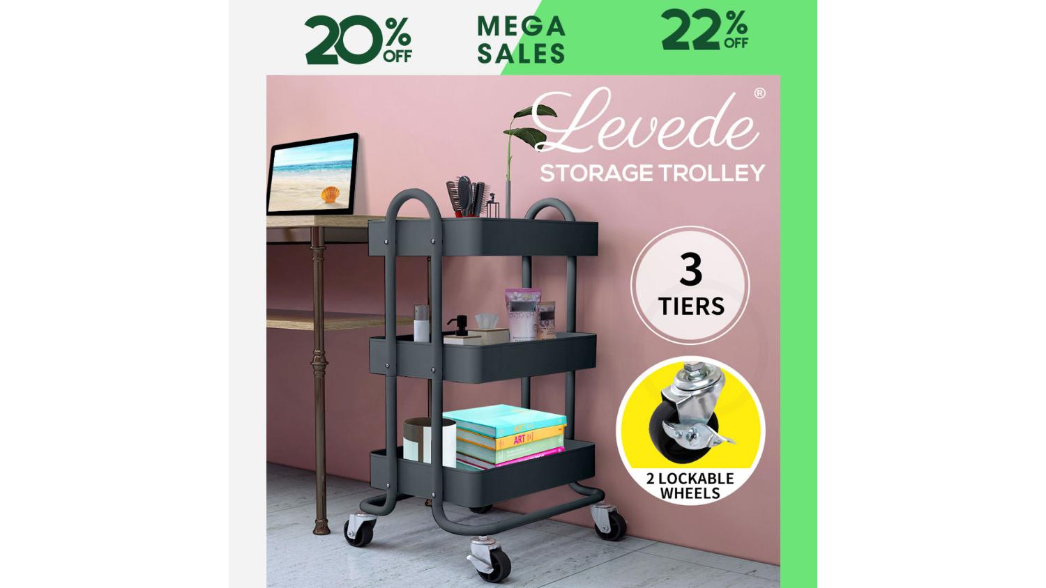 Levede 3 Tier Metal Storage Trolley with Locking Wheels - Matte Grey