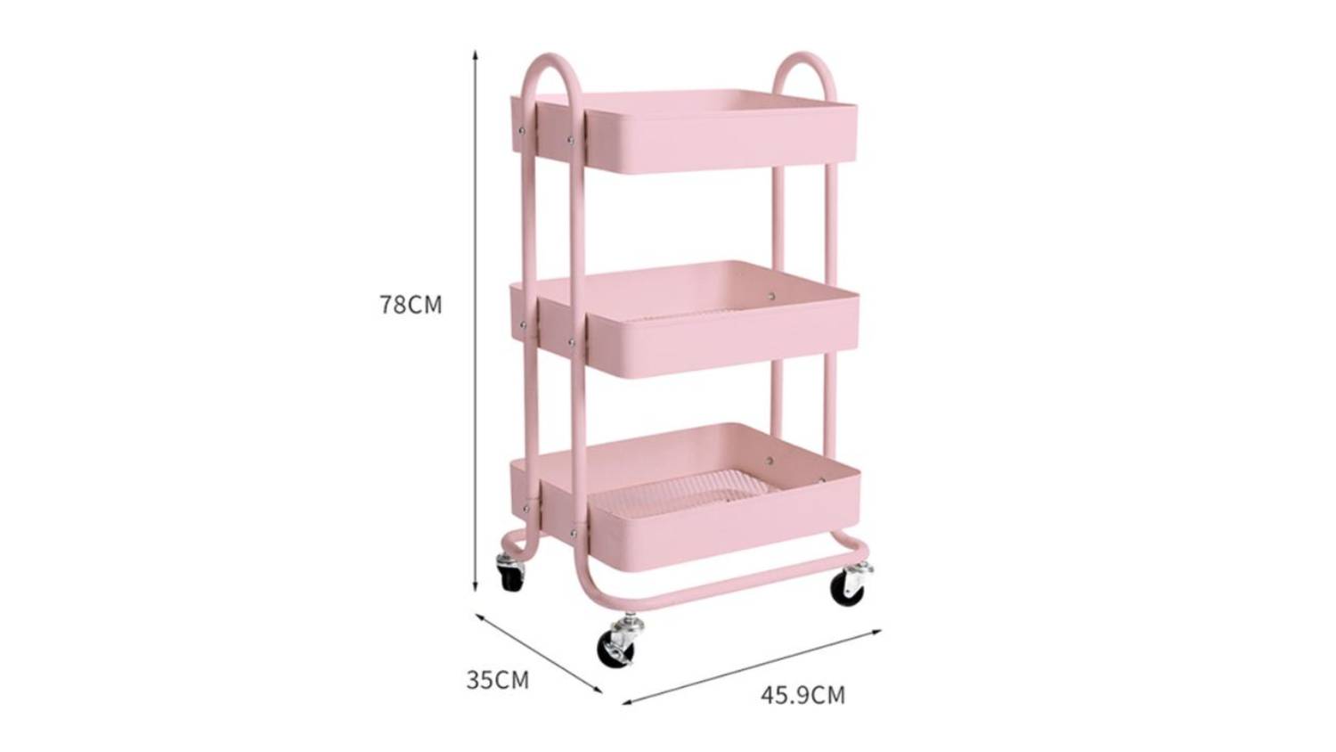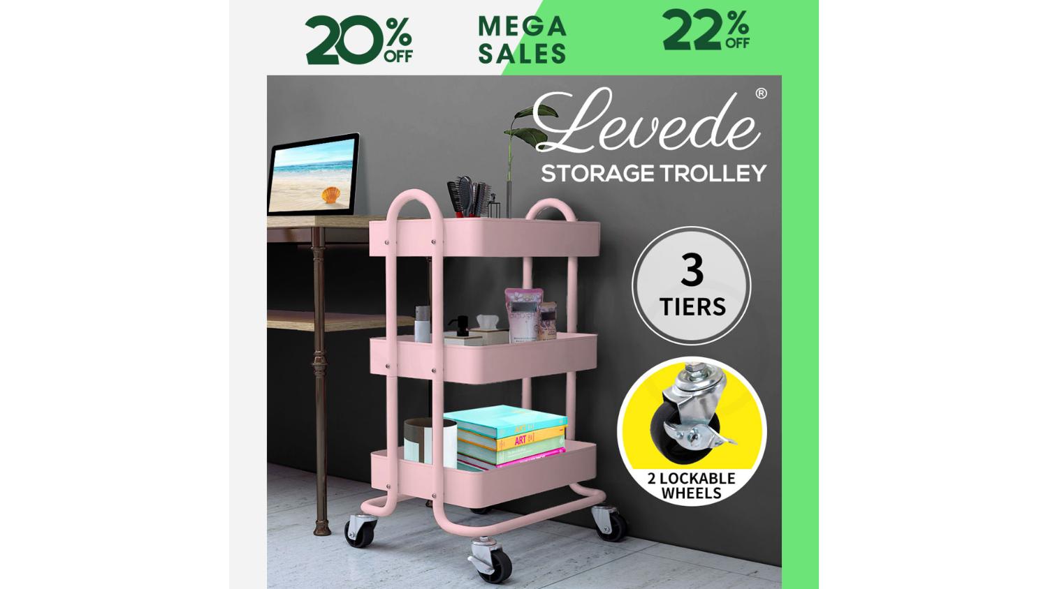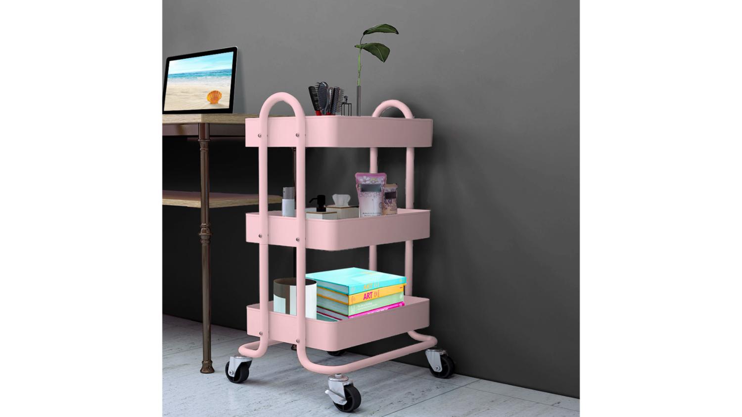 Levede 3 Tier Metal Storage Trolley with Locking Wheels - Matte Pink