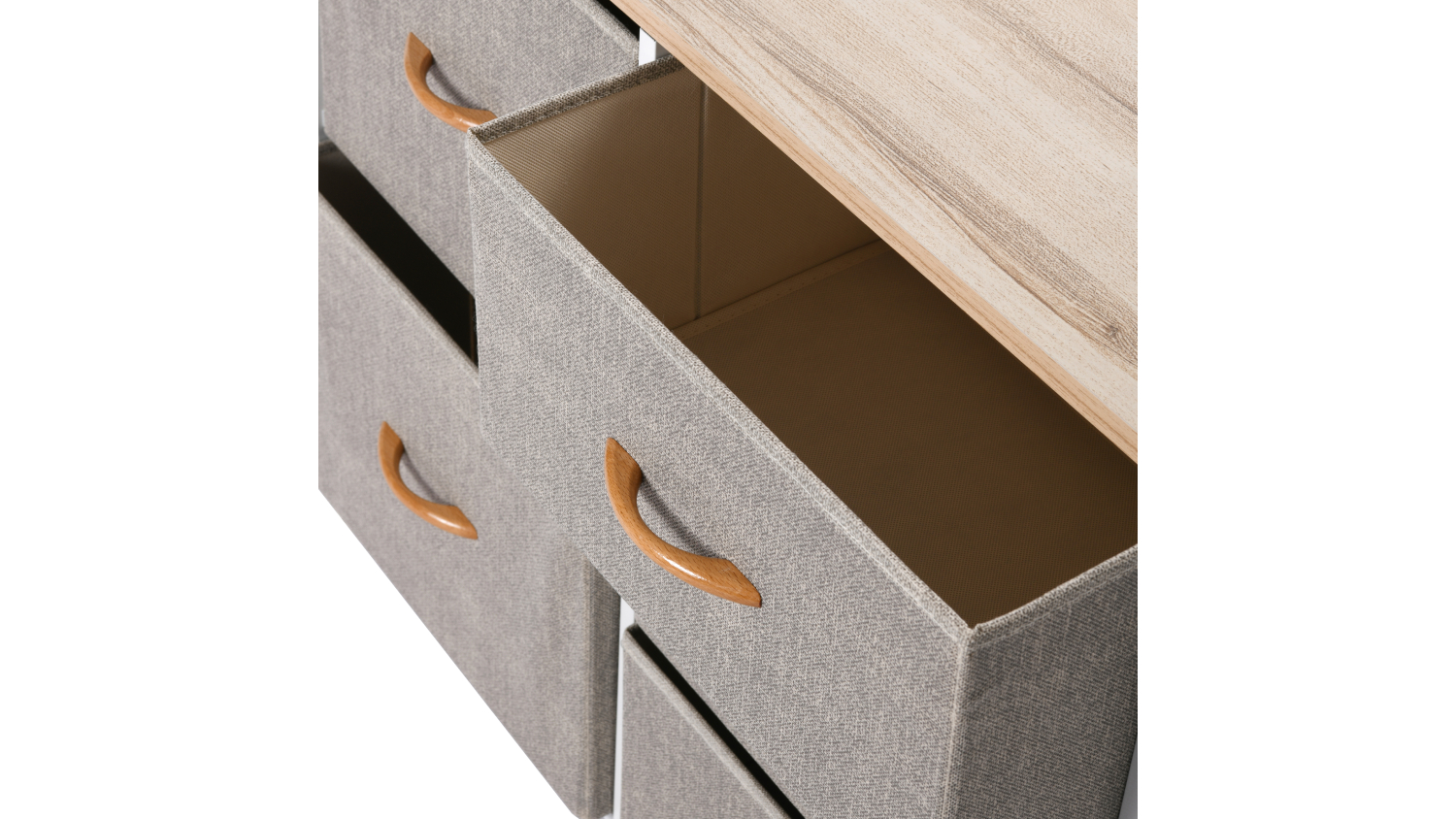 Upgrade your home storage with the Sherwood Luna 5 Drawer Linen Dresser – a resilient and chic addition to your space. Constructed with a strong steel frame and adjustable feet, this tallboy ensures versatility and lasting durability. Now you can say goodbye to clutter and hello to a stylishly organised haven!
