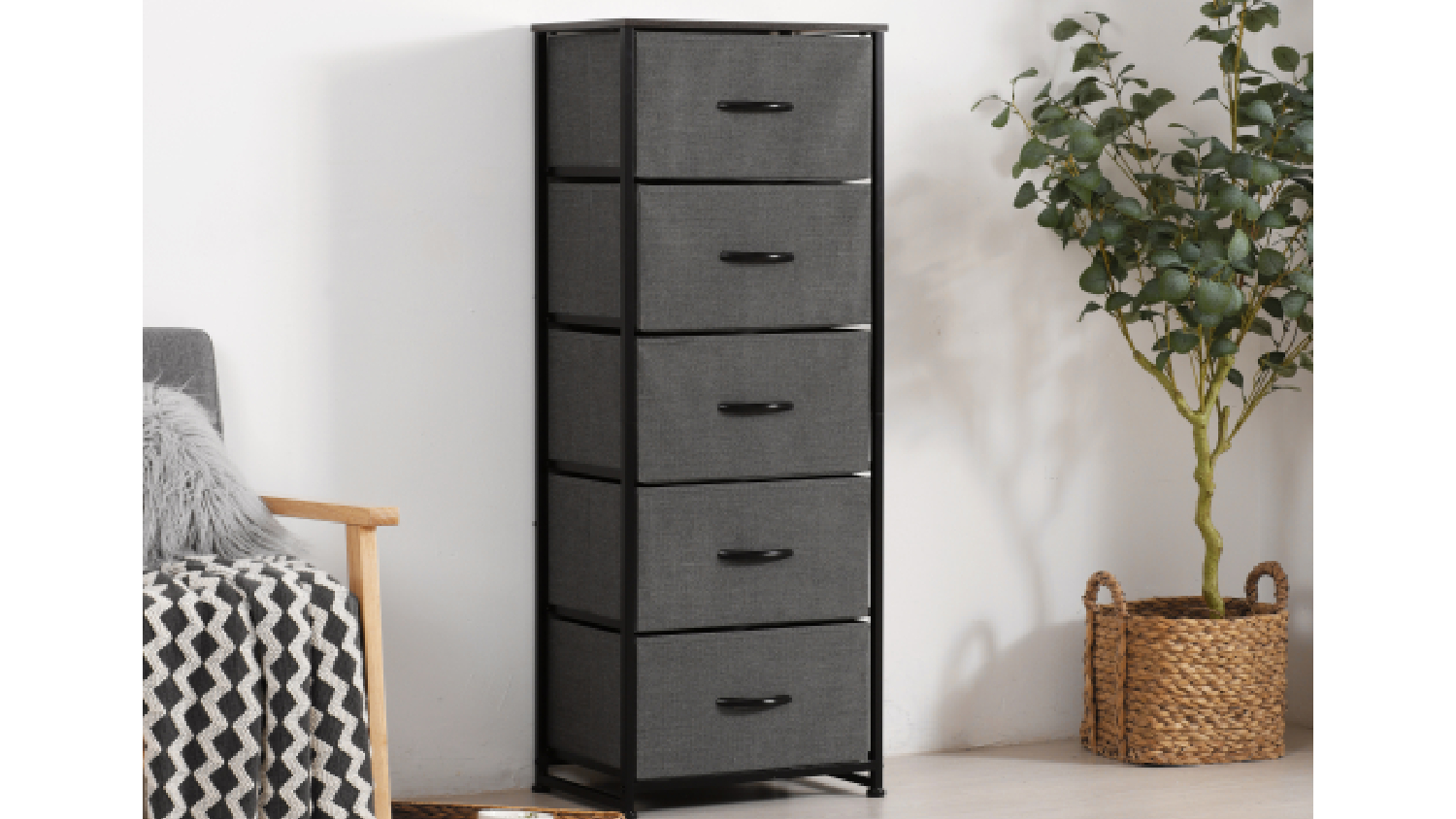 Upgrade your home storage with the Sherwood Luna 5 Drawer Linen Tallboy – a resilient and chic addition to your space. Constructed with a strong steel frame and adjustable feet, this tallboy ensures versatility and lasting durability. Now you can say goodbye to clutter and hello to a stylishly organised haven!