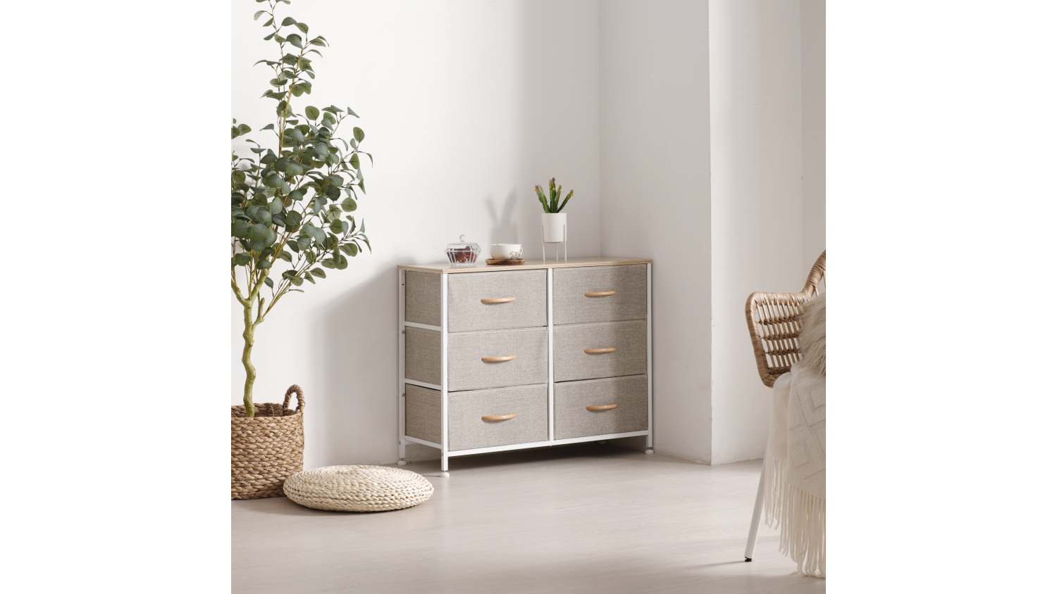Upgrade your home storage with the Sherwood Luna 6 Drawer Linen Dresser – a resilient and chic addition to your space. Constructed with a strong steel frame and adjustable feet, this tallboy ensures versatility and lasting durability. Now you can say goodbye to clutter and hello to a stylishly organised haven!