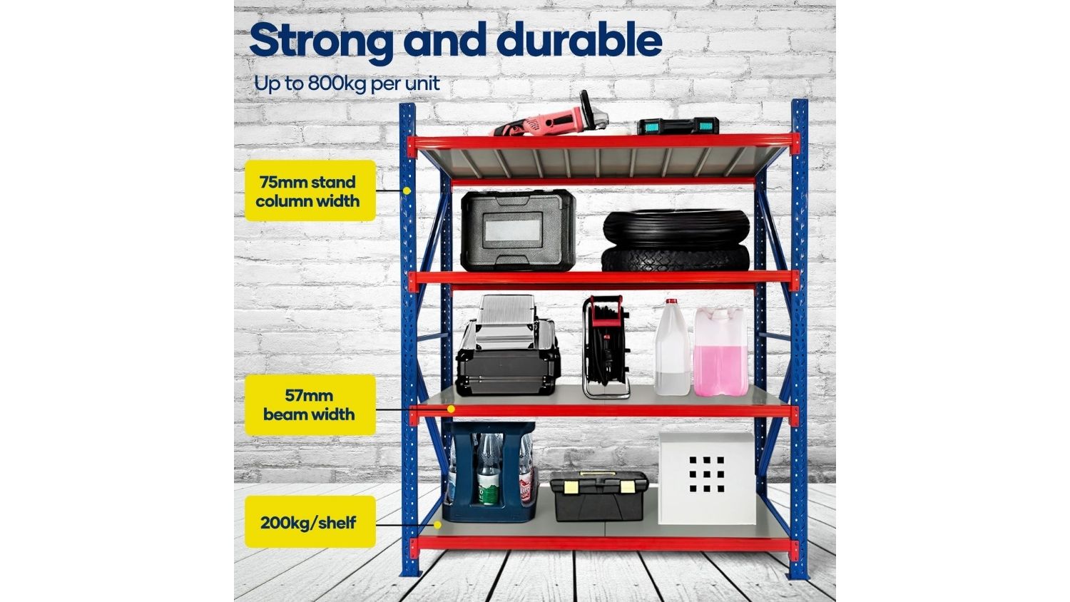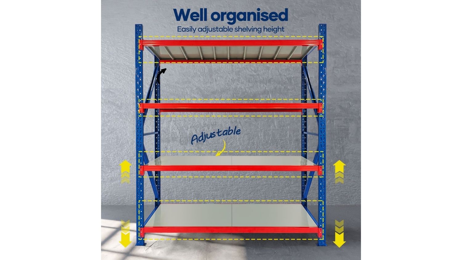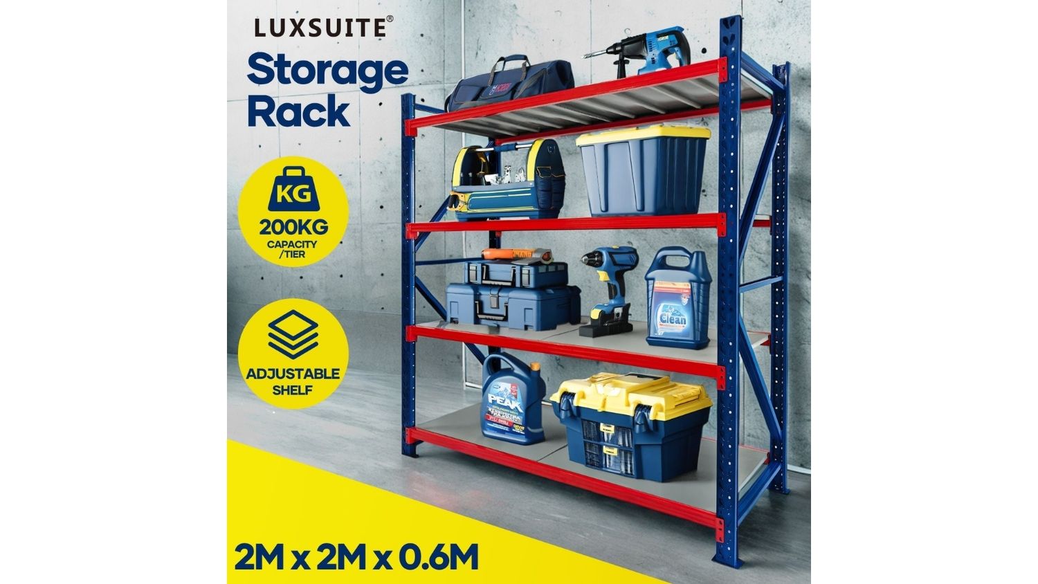 Upgrade your storage setup with the Luxsuite 22m Garage Shelving Rack. This unit is crafted from strong steel with a rust‑resistant finish, and it also features four heavy‑duty shelves that hold up to 200 kg each when evenly distributed. You can easily adjust the shelf heights to accommodate bulky tools, boxes, or equipment. Simple to assemble and highly adaptable, this rack works beautifully in garages, warehouses, pantries, workshops, and laundry spaces.
