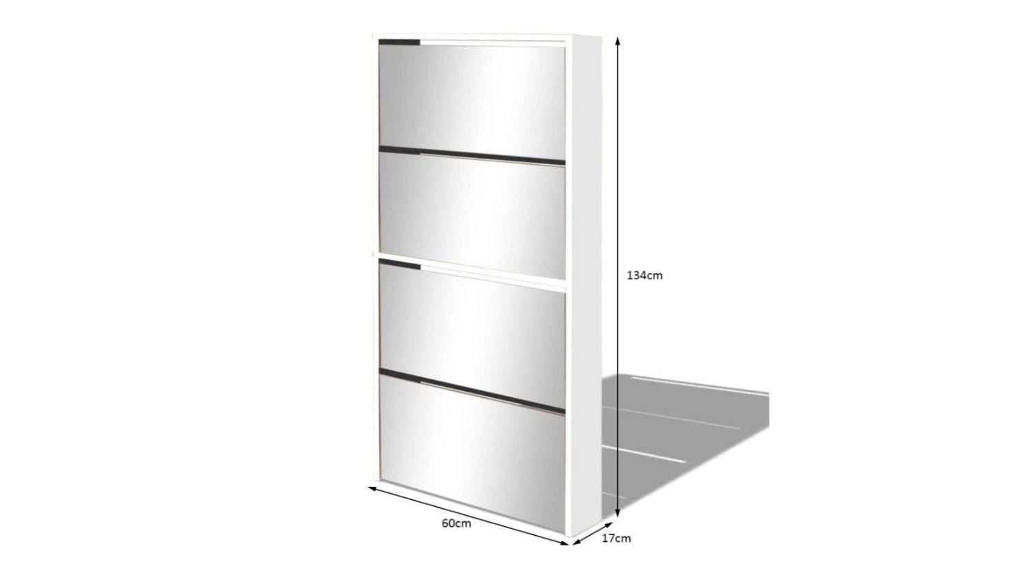 Keep your space organised and add a touch of glamour to your home with the TSB Living 4-Tier Mirror Paneled Shoe Cabinet! Crafted from high-quality materials, including mirror finish and laminated particleboard, this shoe cabinet ensures durability and longevity. It holds a minimum of 8 pairs of shoes, making it an essential addition to any home.