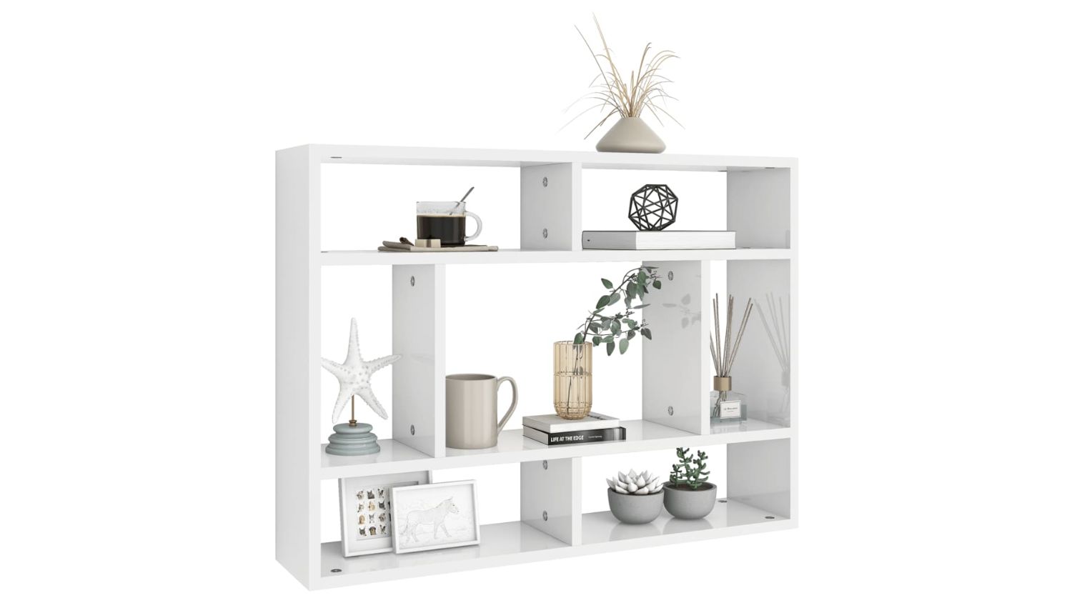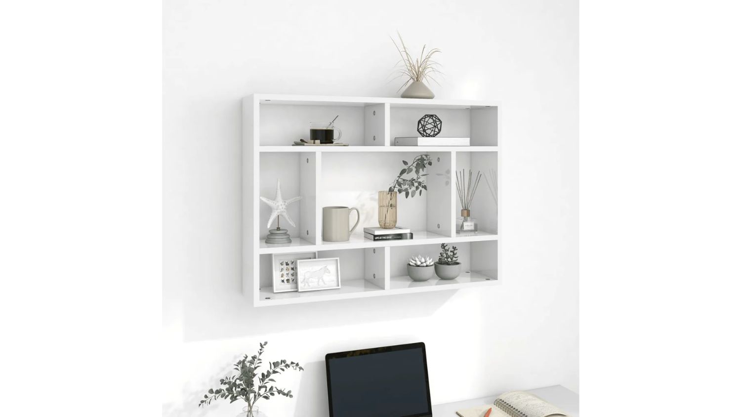 Short on space? The NNEVL 7 Display Wall Shelves in sleek gloss white are the perfect way to add style and storage without taking up floor space. With 7 open compartments, it’s ideal for showing off books, awards, or your favourite decor. Made from sturdy chipboard and easy to clean, it mounts easily with included hardware for a fuss-free setup.
