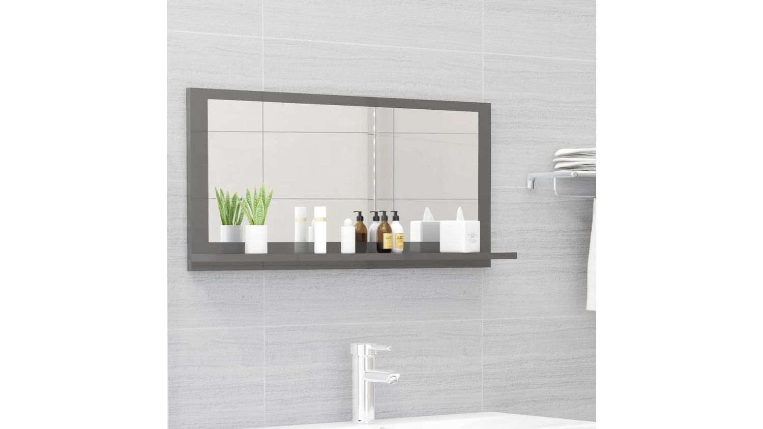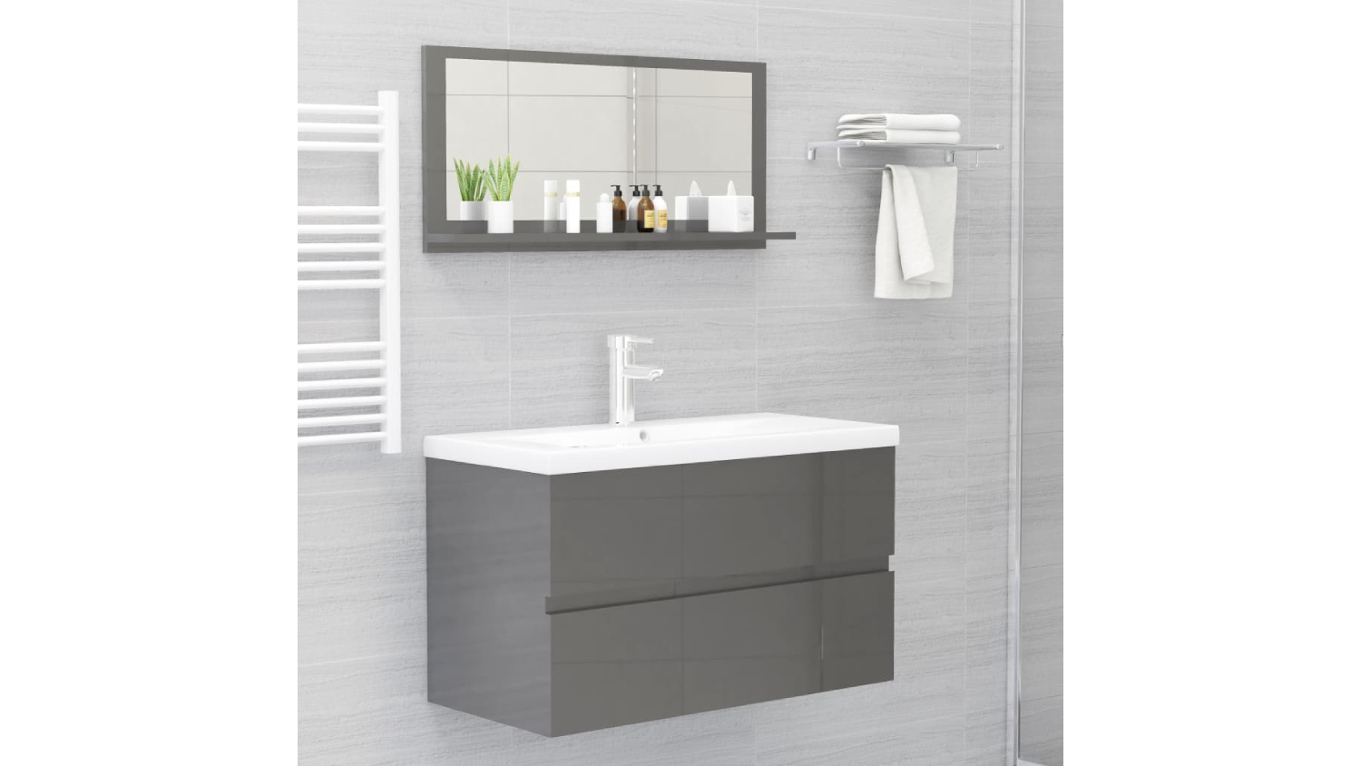 NNEVL Bathroom Mirror with Built-In Shelf 80 x 10.5 x 37cm - Gloss Grey