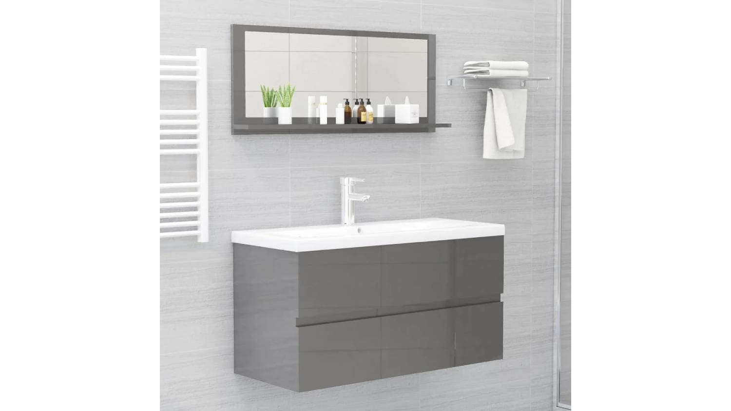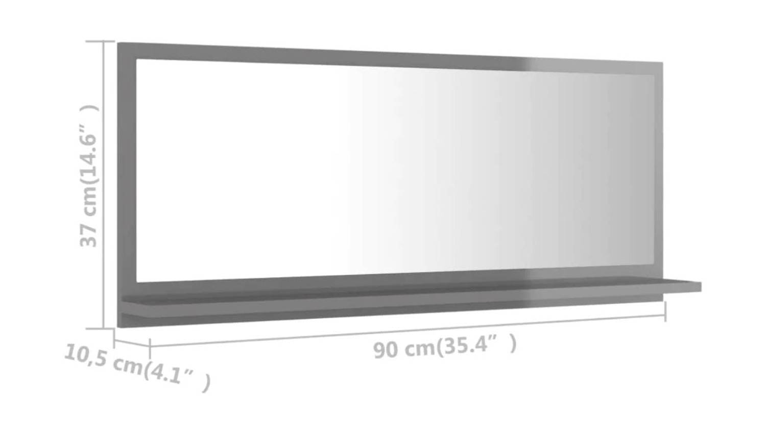 NNEVL Bathroom Mirror with Built-In Shelf 90 x 10.5 x 37cm - Gloss Grey