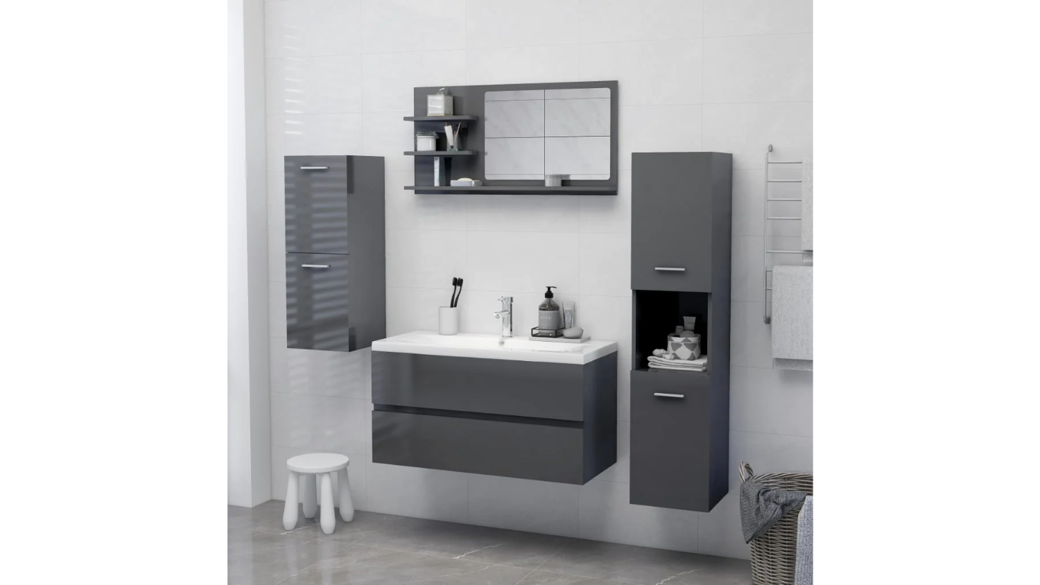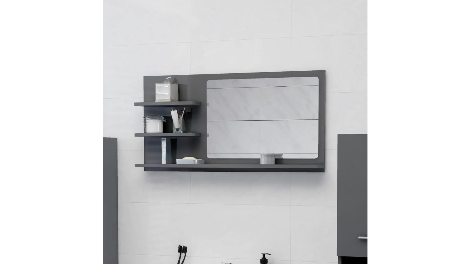 NNEVL Bathroom Mirror with Built-In Shelving 90 x 10.5 x 45cm - Gloss Grey