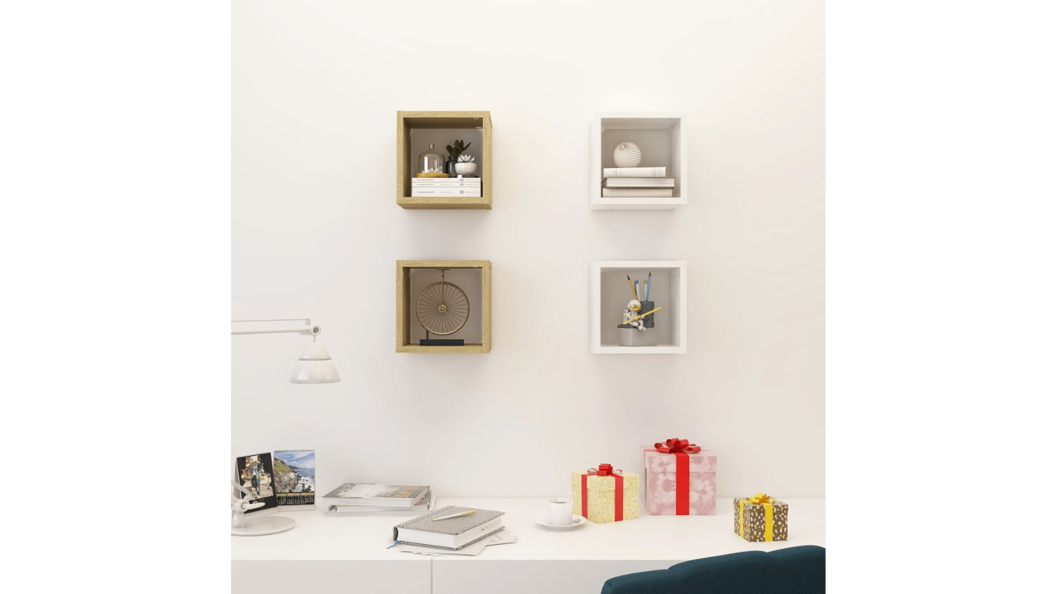 *NNEVL Floating Cube Wall Shelves 4pcs. 22 x 15 x 22 Sonoma Oak/White only. Other colours are sold separately,