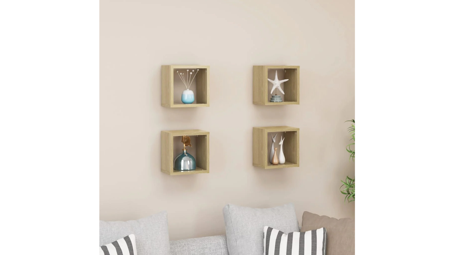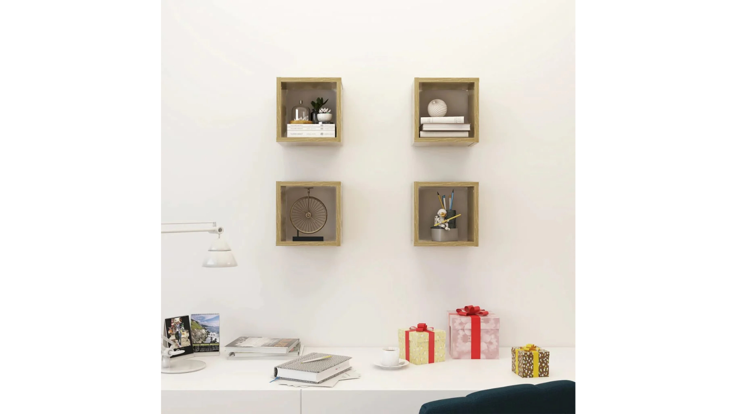 NNEVL Floating Cube Wall Shelves 4pcs. 22 x 15 x 22cm - Sonoma Oak