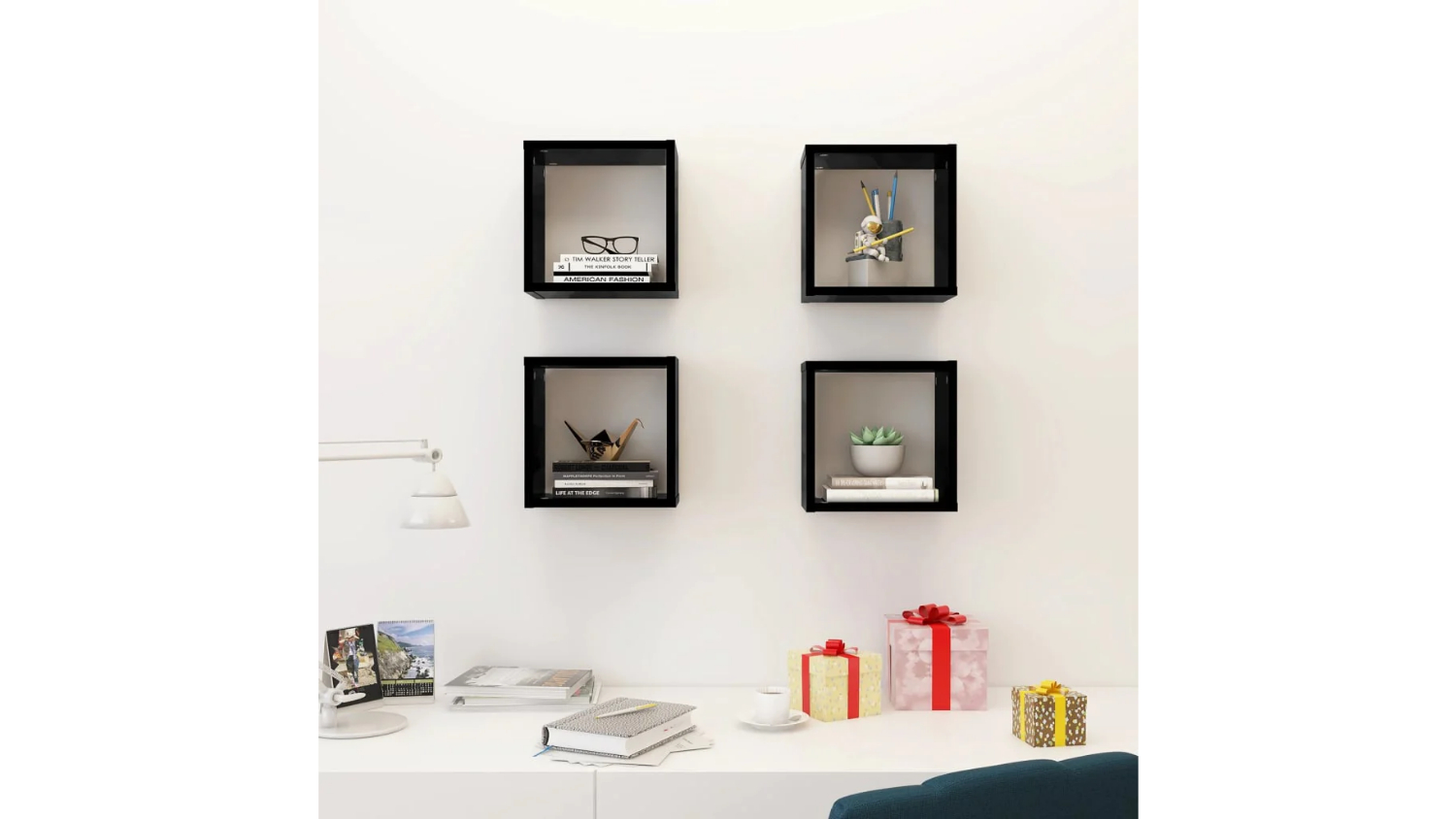 *NNEVL Floating Cube Wall Shelves 4pcs. 26 x 15 x 26 Gloss Black only. Other colours are sold separately,