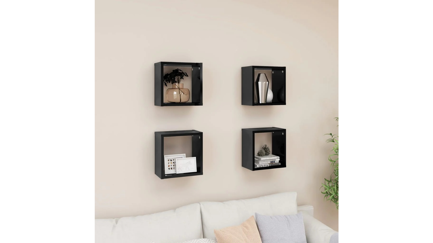 NNEVL Floating Cube Wall Shelves 4pcs. 26 x 15 x 26 - Gloss Black