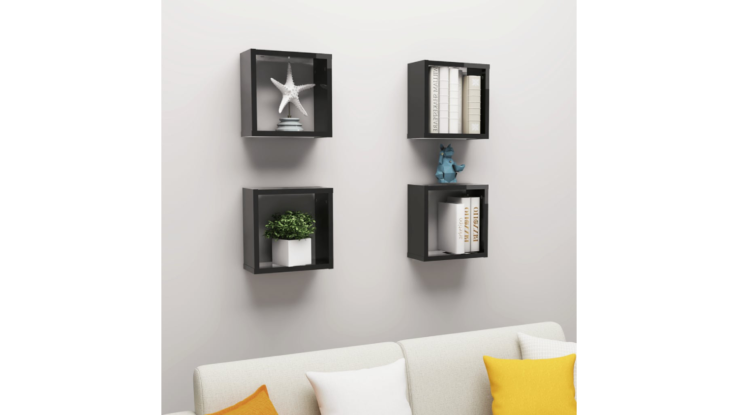 *NNEVL Floating Cube Wall Shelves 4pcs. 30 x 15 x 30 Gloss Black only. Other colours are sold separately,
