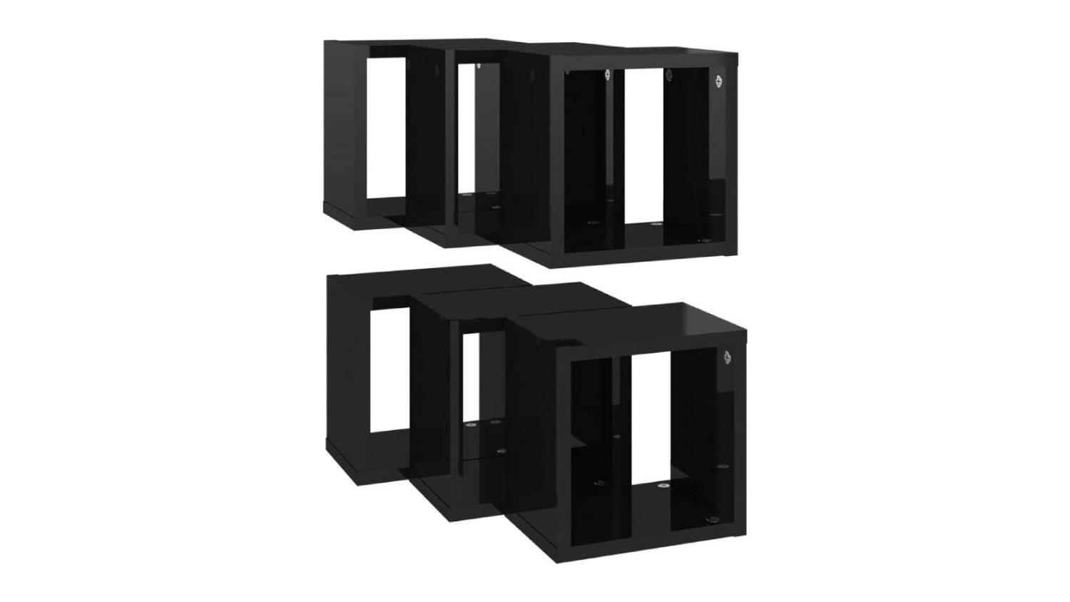 NNEVL Floating Cube Wall Shelves 6pcs. 22 x 15 x 22cm - Gloss Black