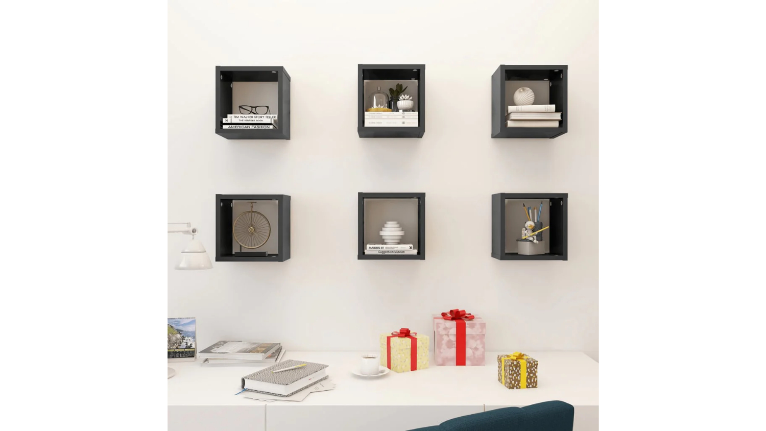 *NNEVL Wall Shelves Floating Cube 6pcs. 22 x 15 x 22cm - Gloss Grey only. Other colours are sold separately.