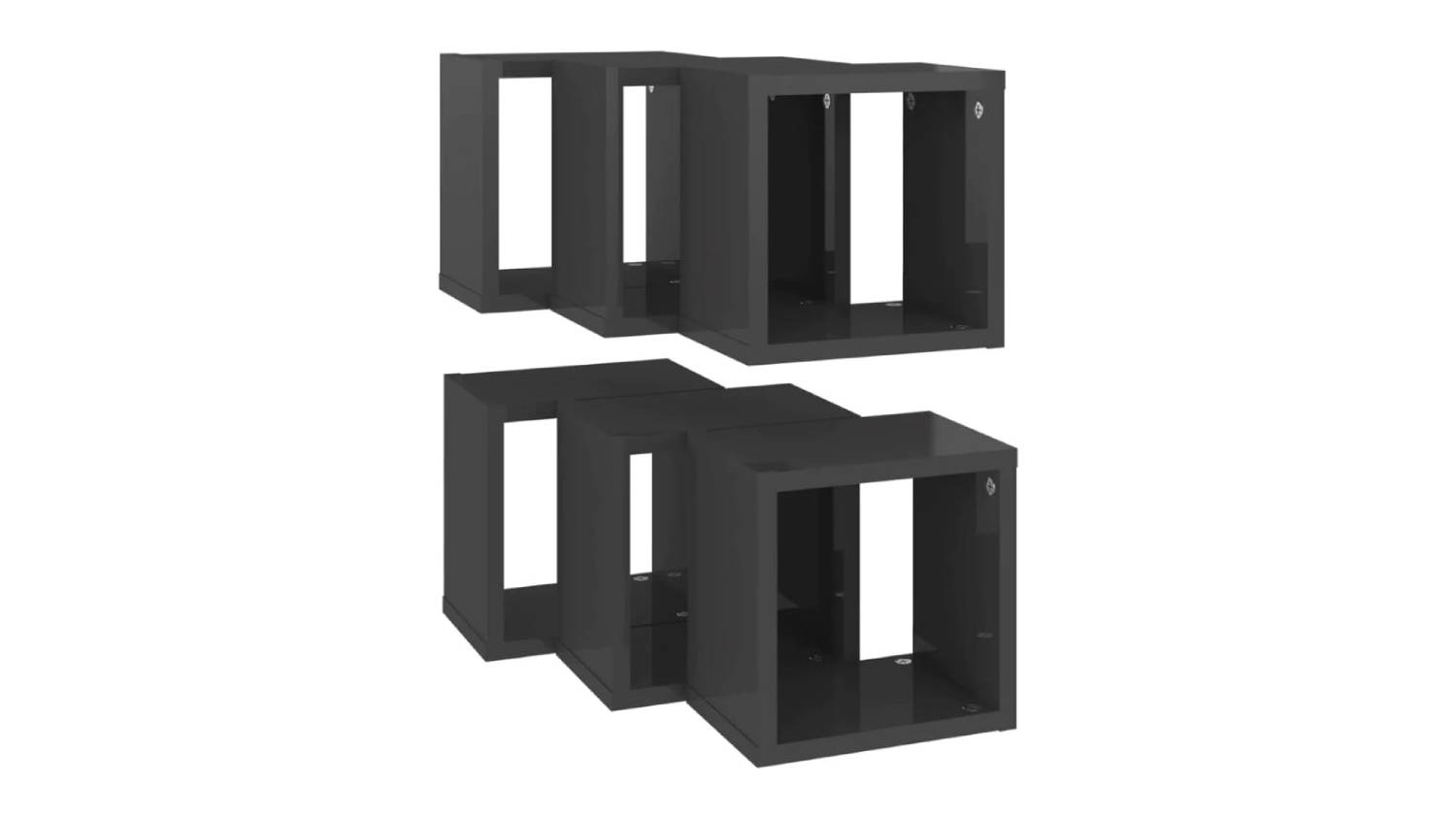 NNEVL Floating Cube Wall Shelves 6pcs. 22 x 15 x 22cm - Gloss Grey