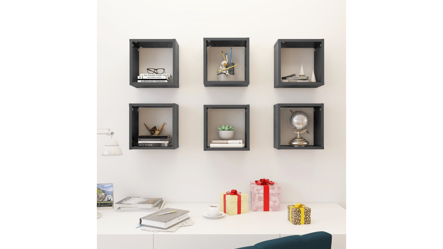 *NNEVL Wall Shelves Floating Cube 6pcs. 26 x 15 x 26 - Gloss Grey only. Other colours are sold separately.