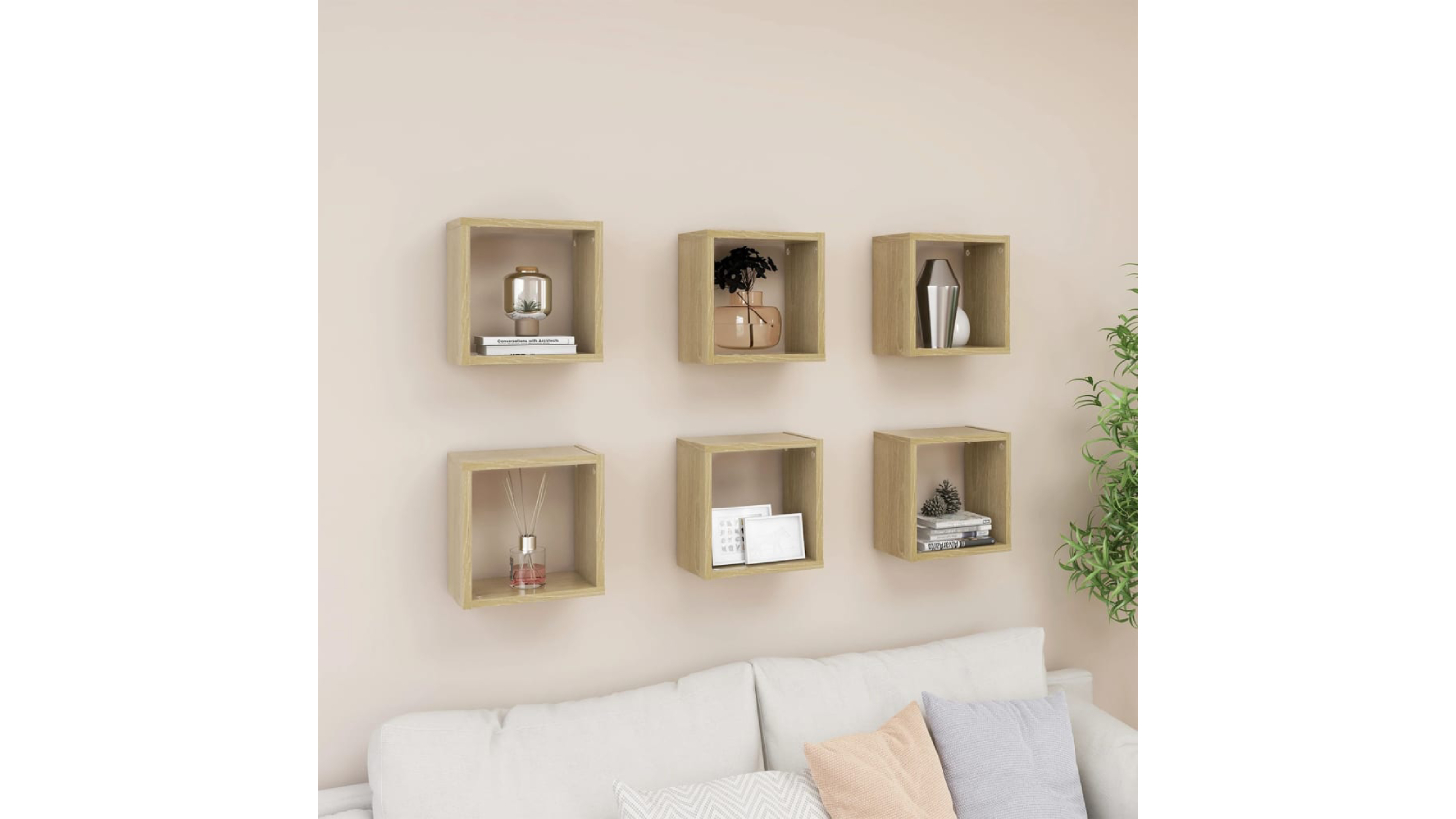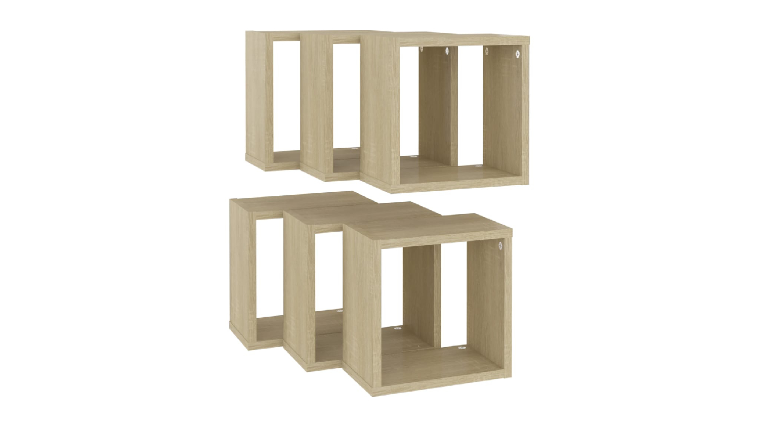 NNEVL Floating Cube Wall Shelves 6pcs. 26 x 15 x 26cm - Sonoma Oak