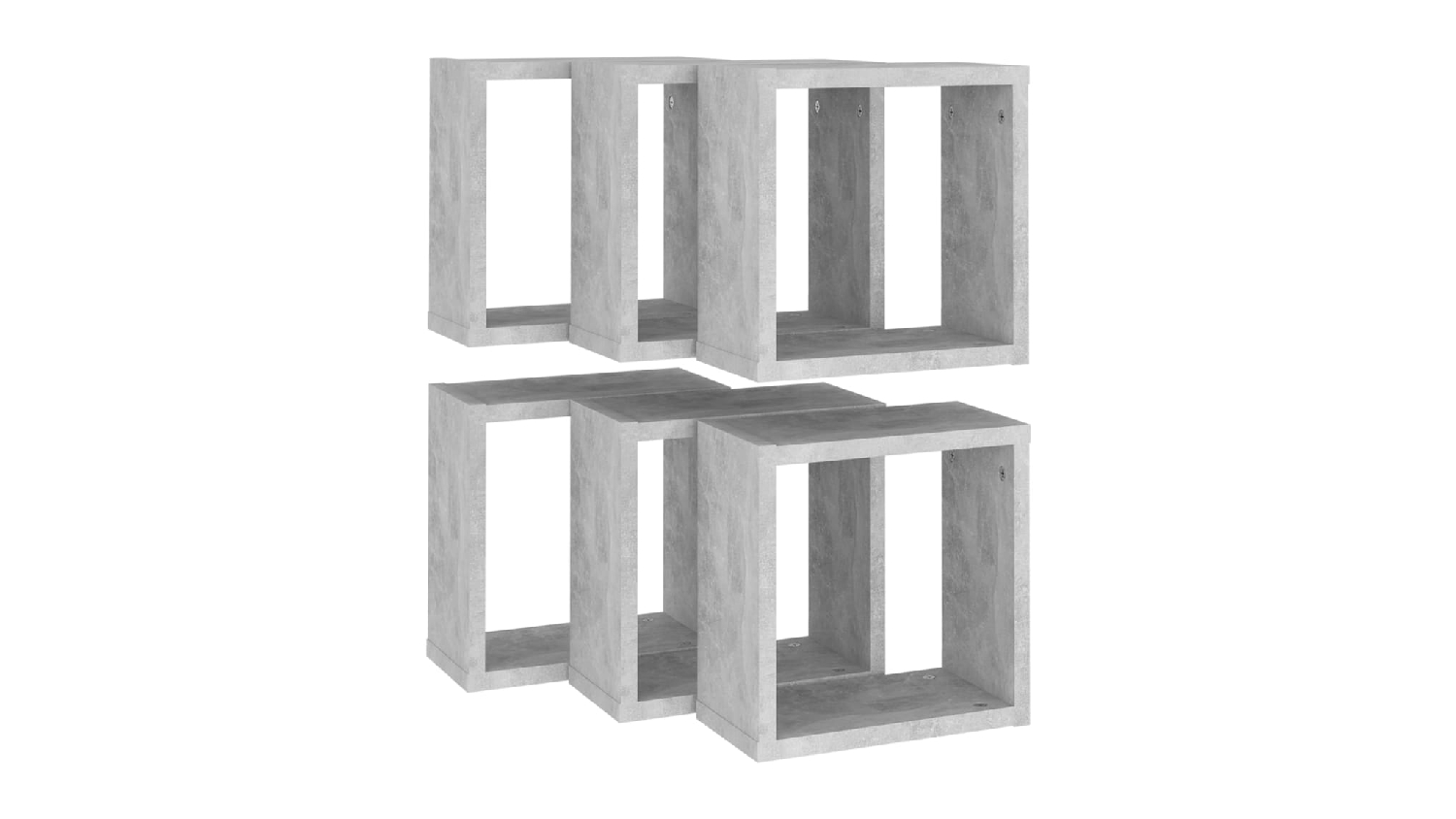 NNEVL Floating Cube Wall Shelves 6pcs. 30 x 15 x 30cm - Concrete Grey