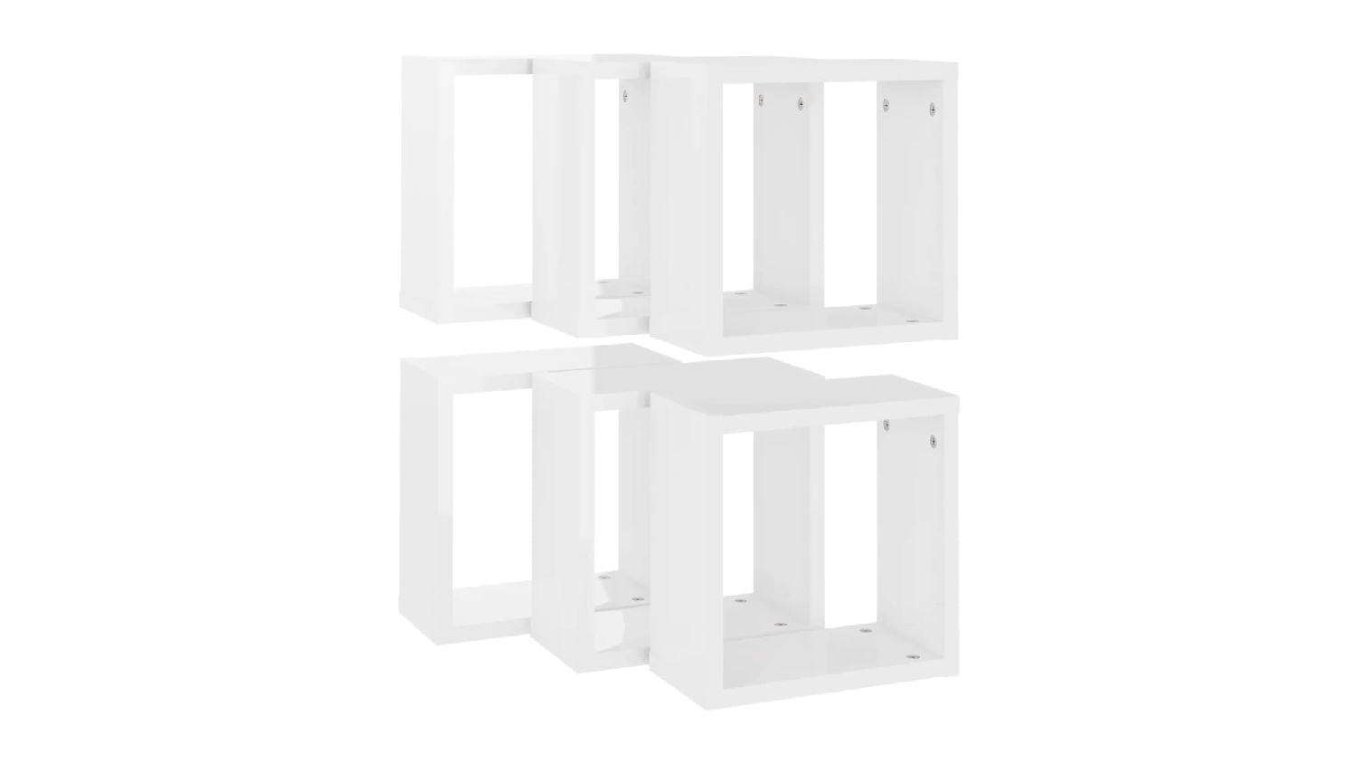 NNEVL Floating Cube Wall Shelves 6pcs. 30 x 15 x 30cm - Gloss White