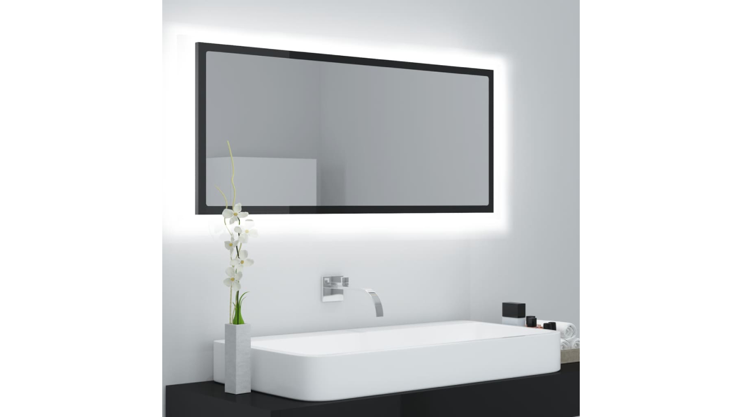 NNEVL LED Backlit Bathroom Mirror 100 x 8.5 x 37cm - Gloss Black