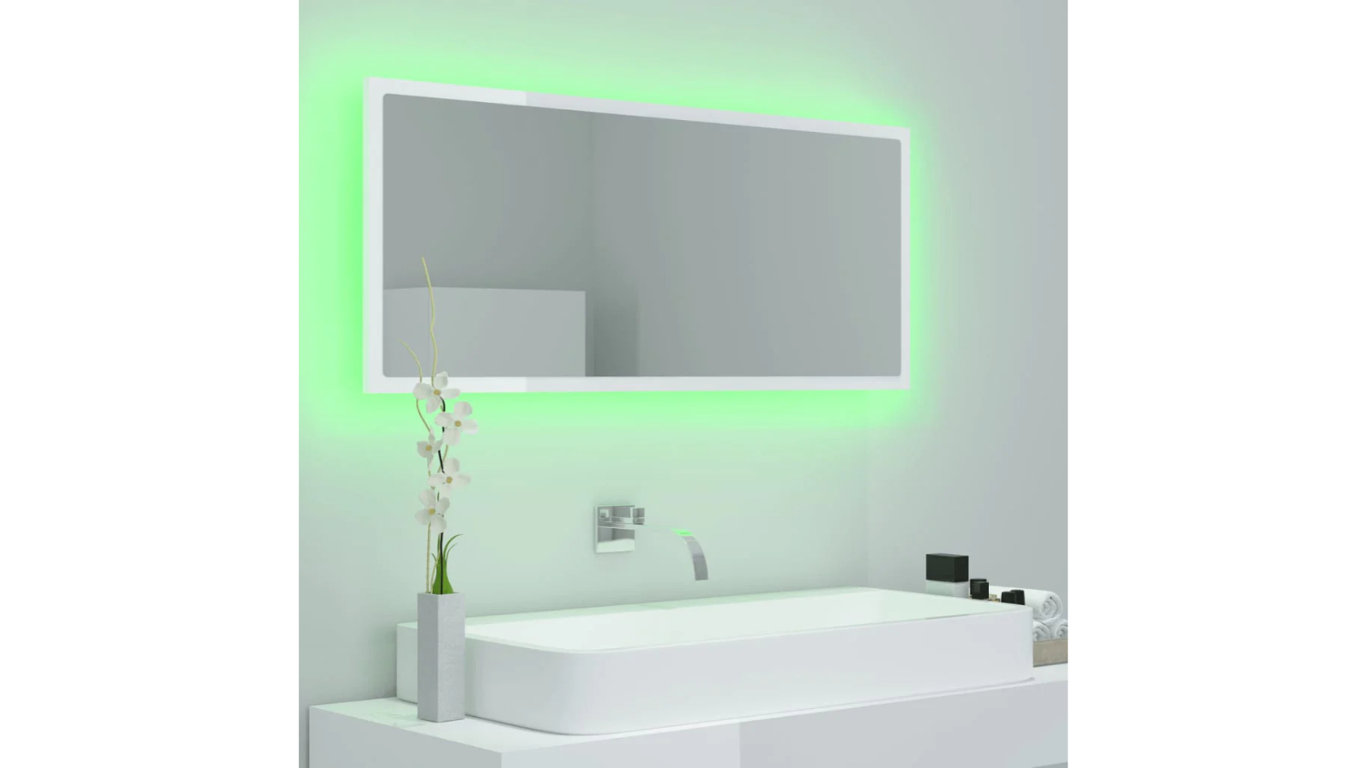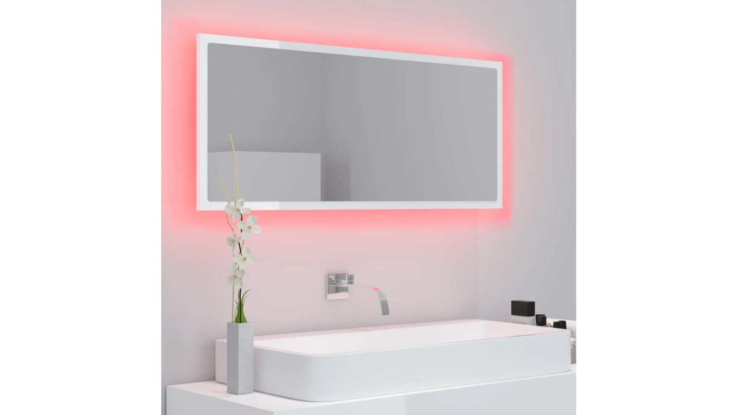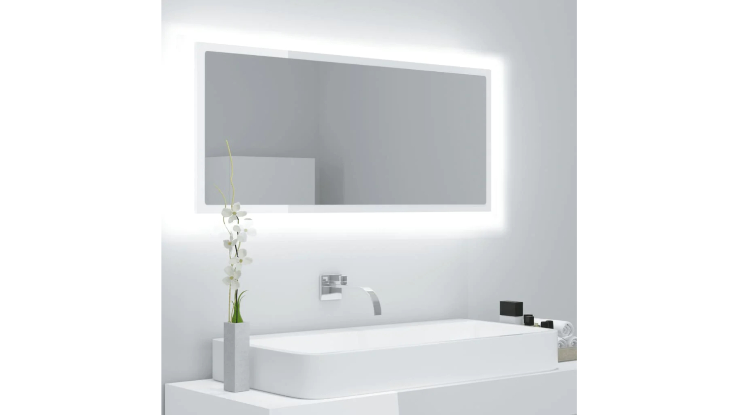 NNEVL LED Backlit Bathroom Mirror 100 x 8.5 x 37cm - Gloss White