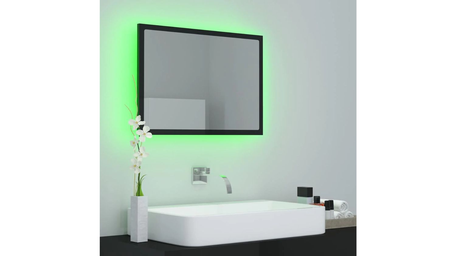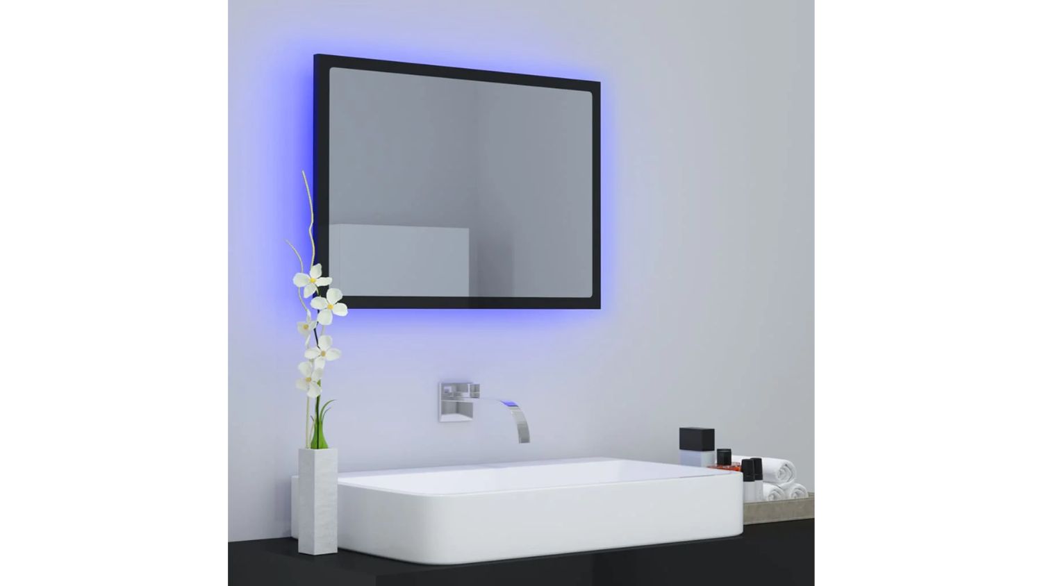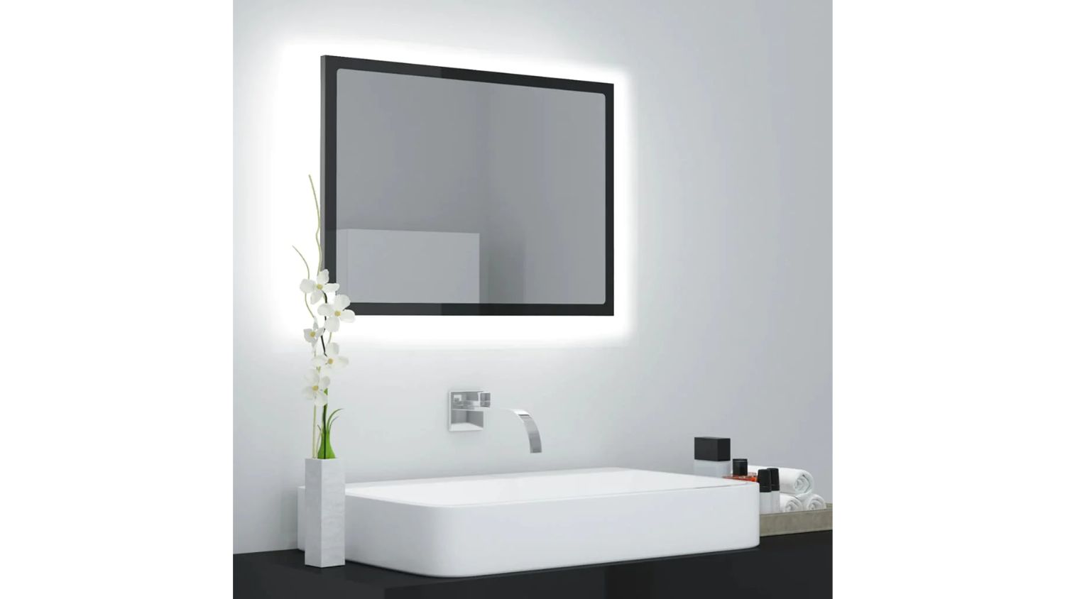 NNEVL LED Backlit Bathroom Mirror 60 x 8.5 x 37cm - Gloss Black