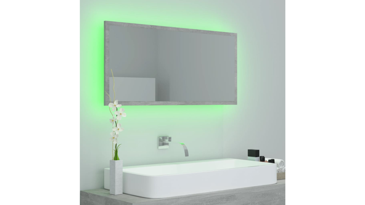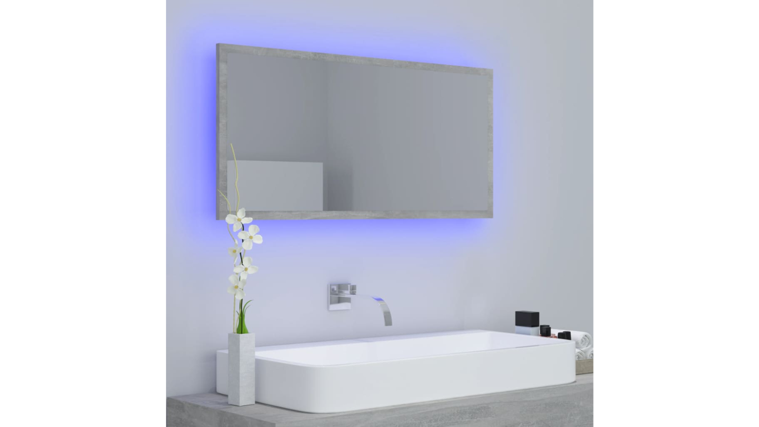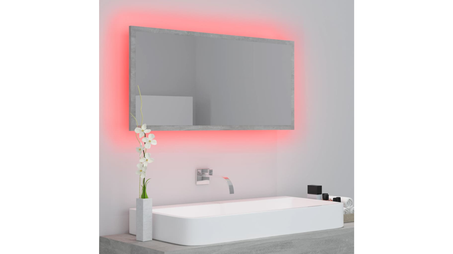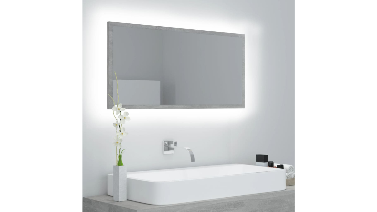 NNEVL LED Backlit Bathroom Mirror 90 x 8.5 x 37cm - Concrete Grey