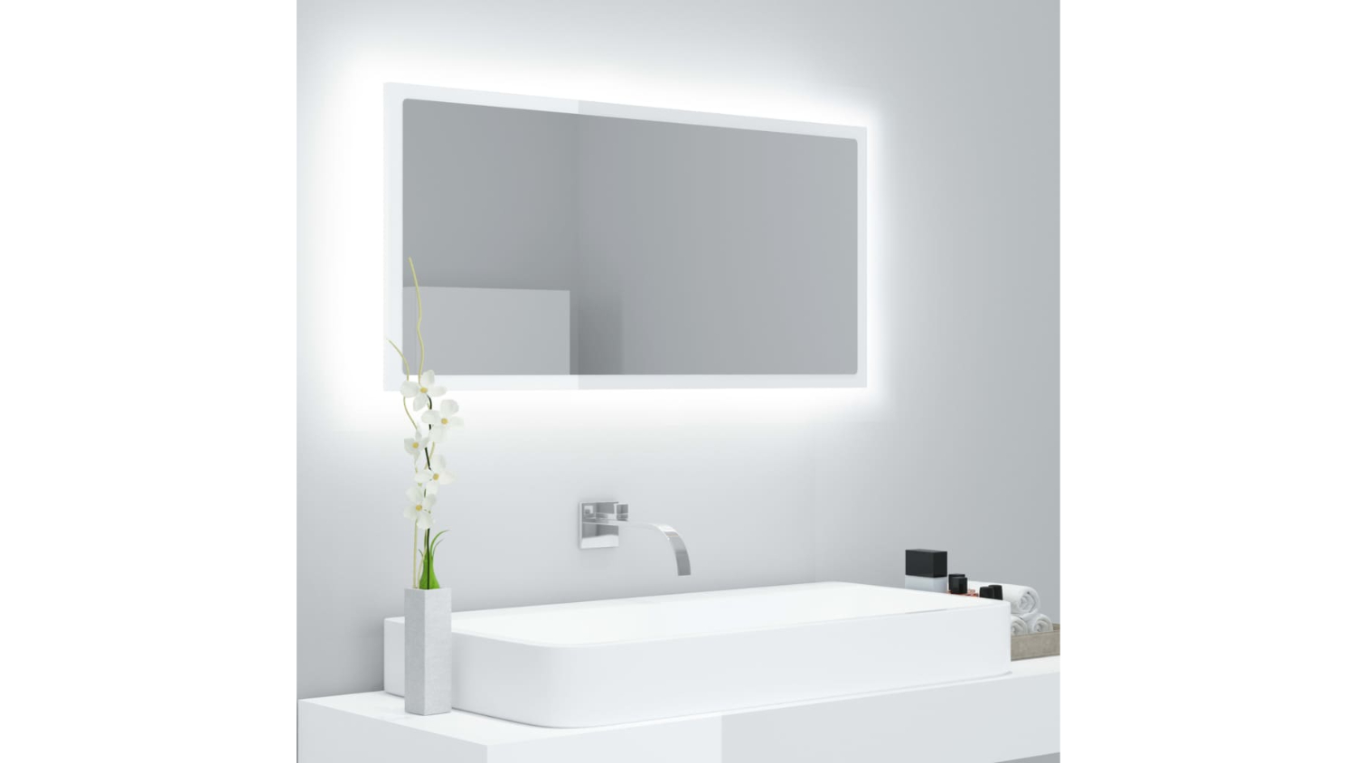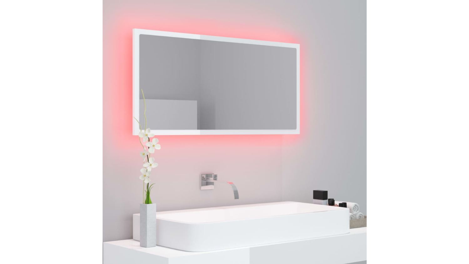 NNEVL LED Backlit Bathroom Mirror 90 x 8.5 x 37cm - Gloss White