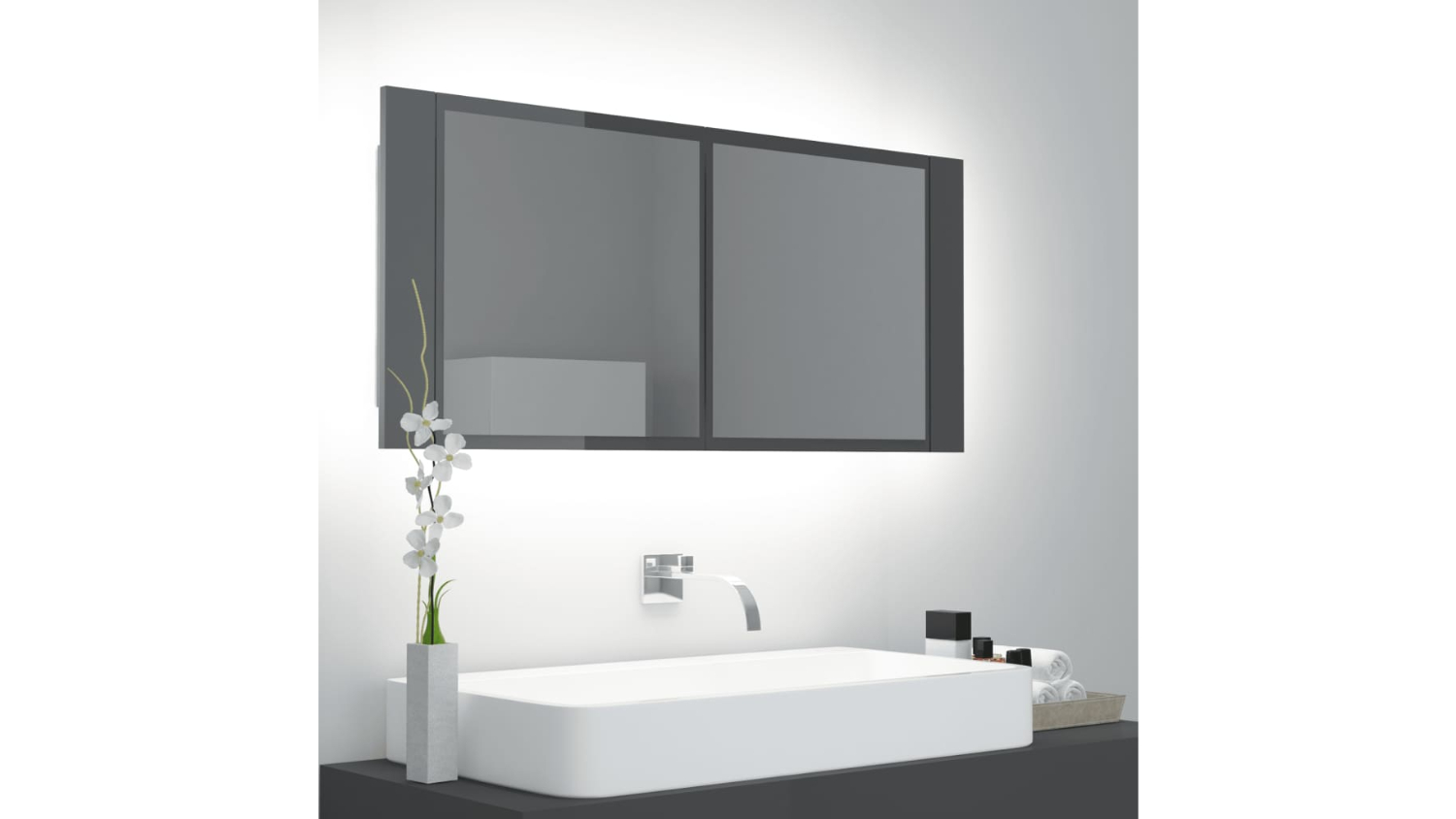 NNEVL LED Backlit Bathroom Mirror Cabinet 100 x 12 x 45cm - Gloss Grey