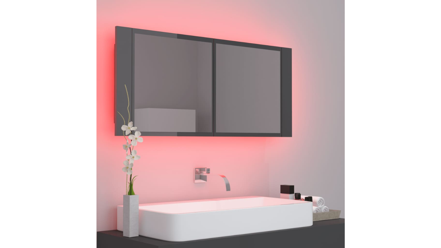 *NNEVL LED Backlit Bathroom Mirror Cabinet 100 x 12 x 45cm Gloss Grey only. Other colours are sold separately.
