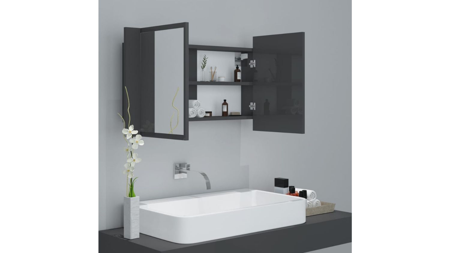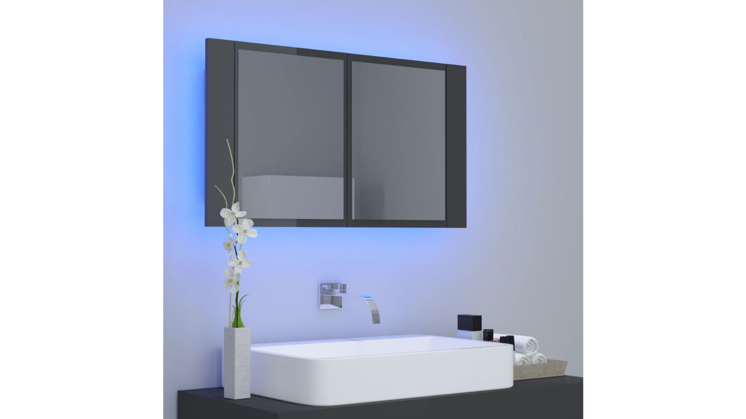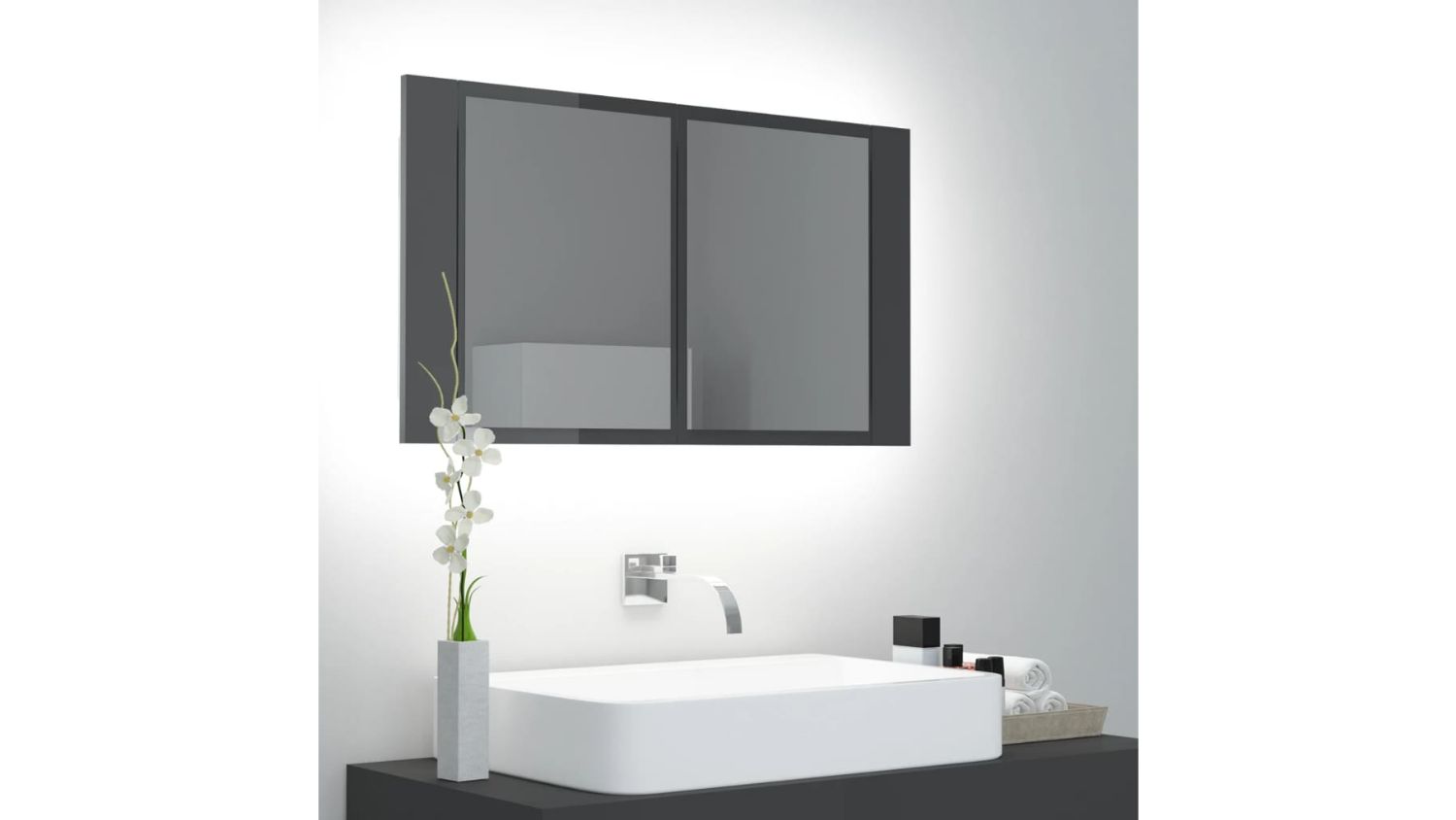 NNEVL LED Backlit Bathroom Mirror Cabinet 80 x 12 x 45cm - Gloss Grey