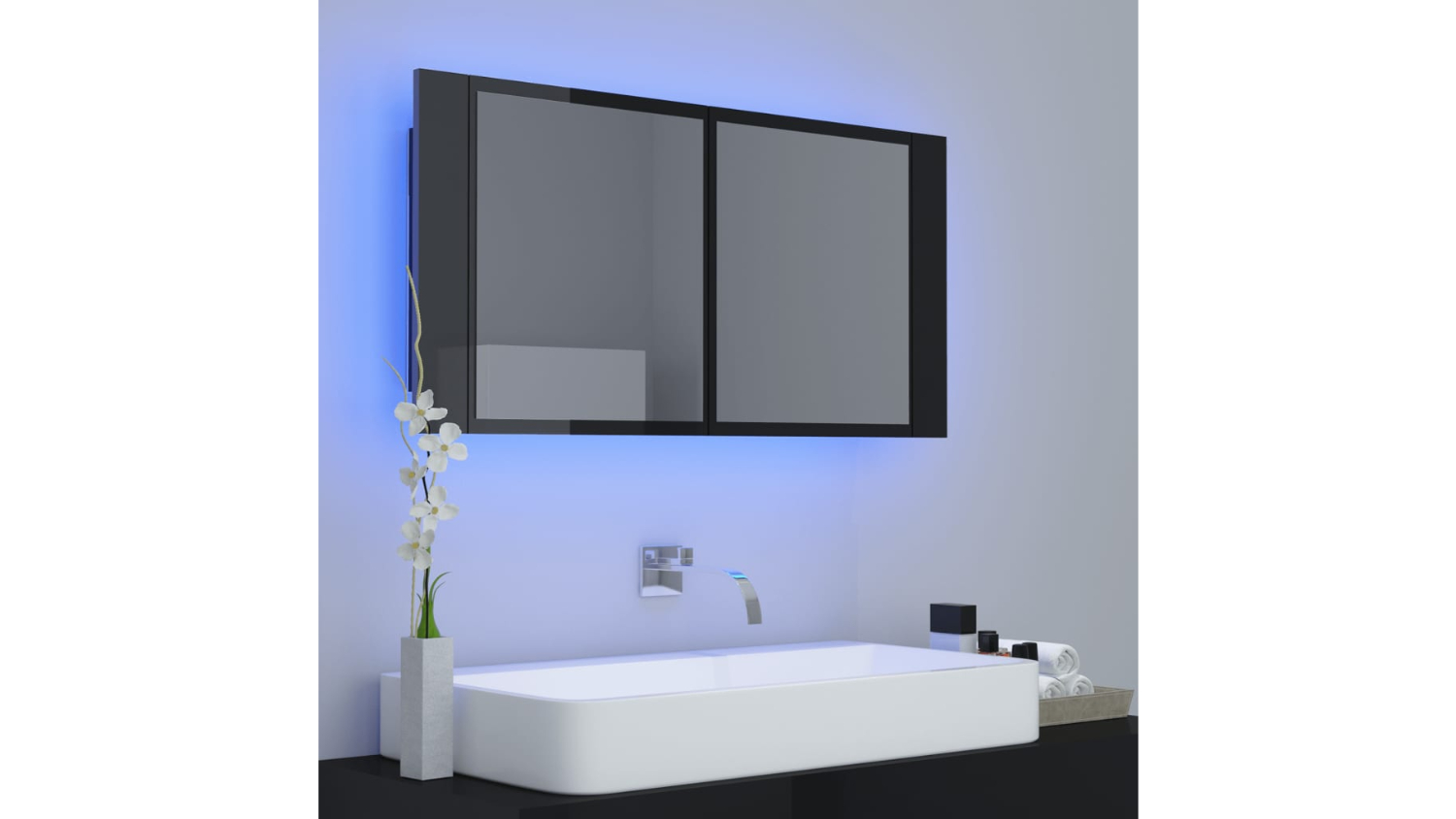 *NNEVL LED Backlit Bathroom Mirror Cabinet 90 x 12 x 45cm Gloss Black only. Other colours are sold separately.
