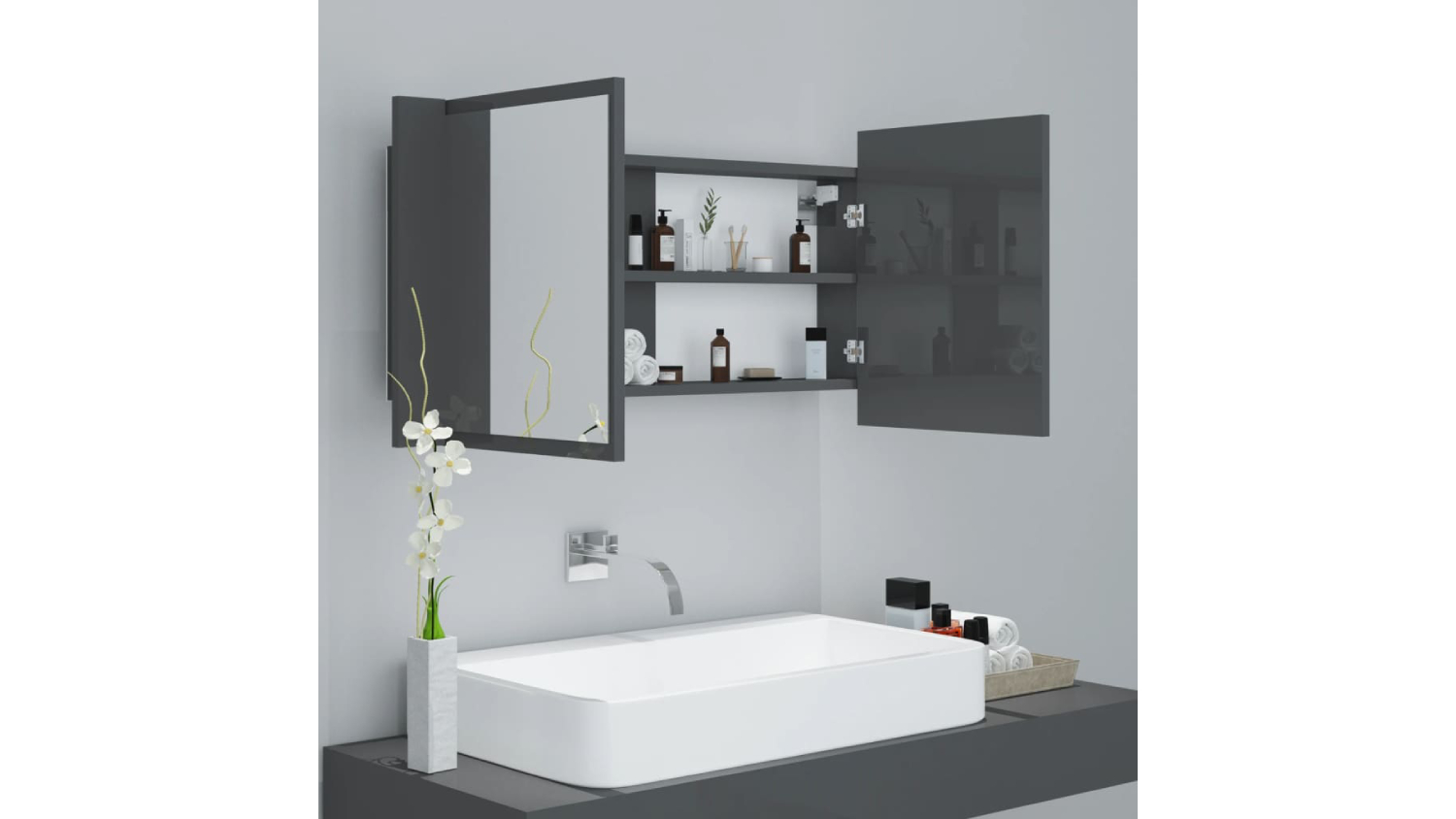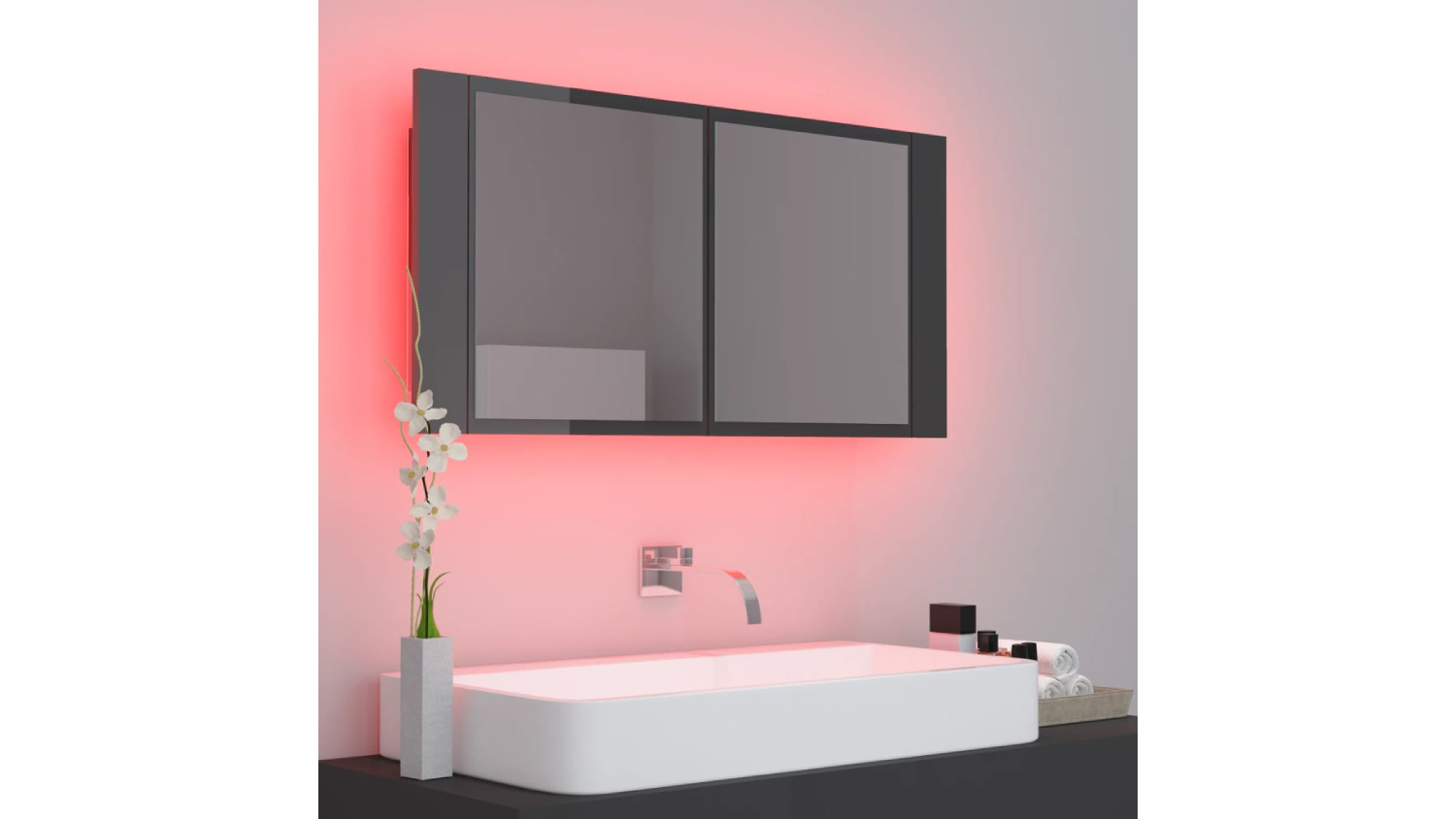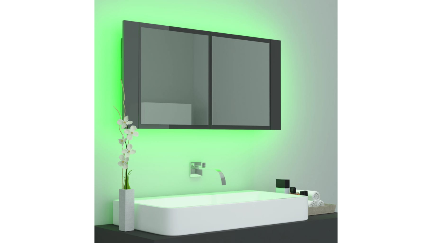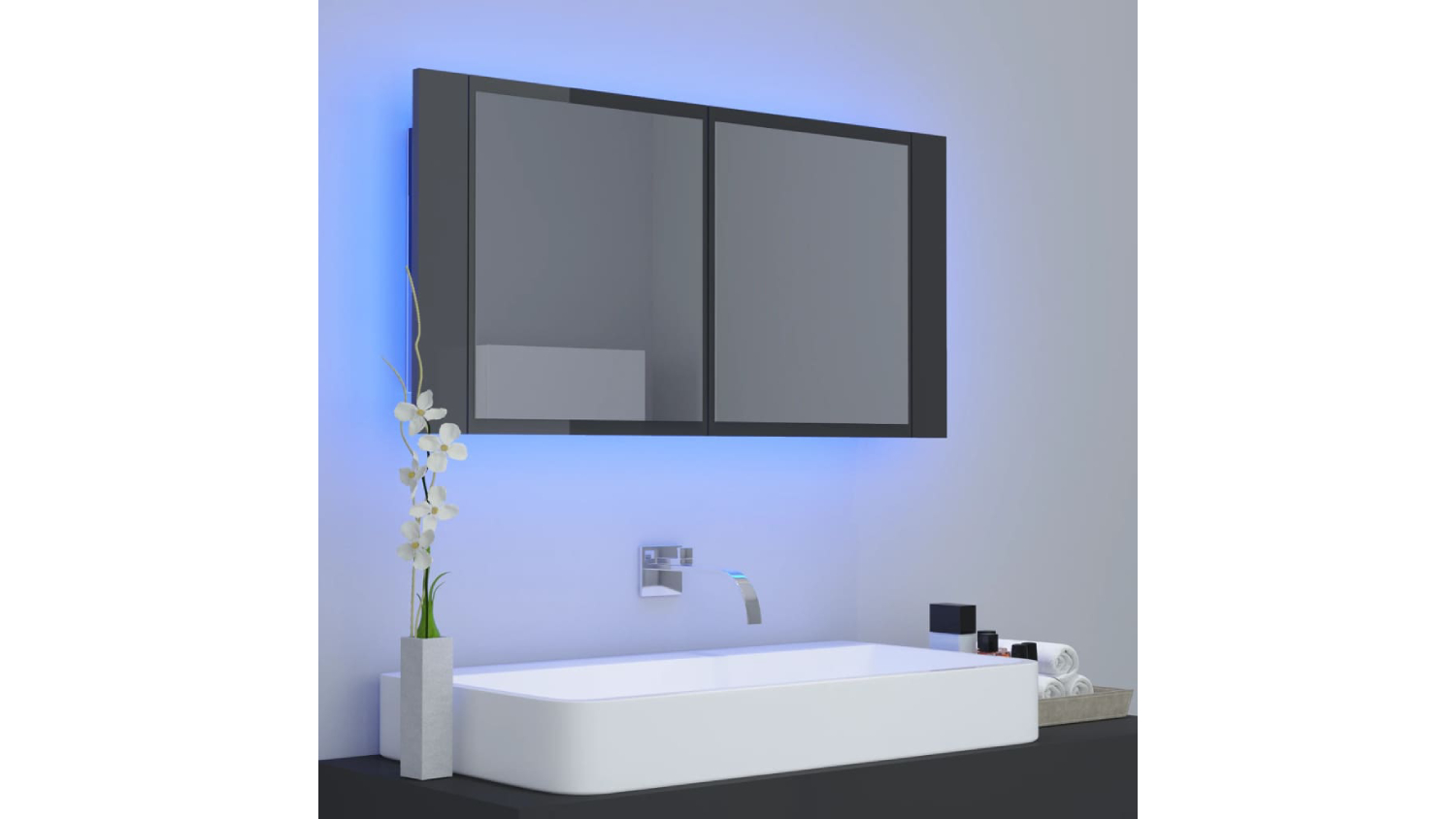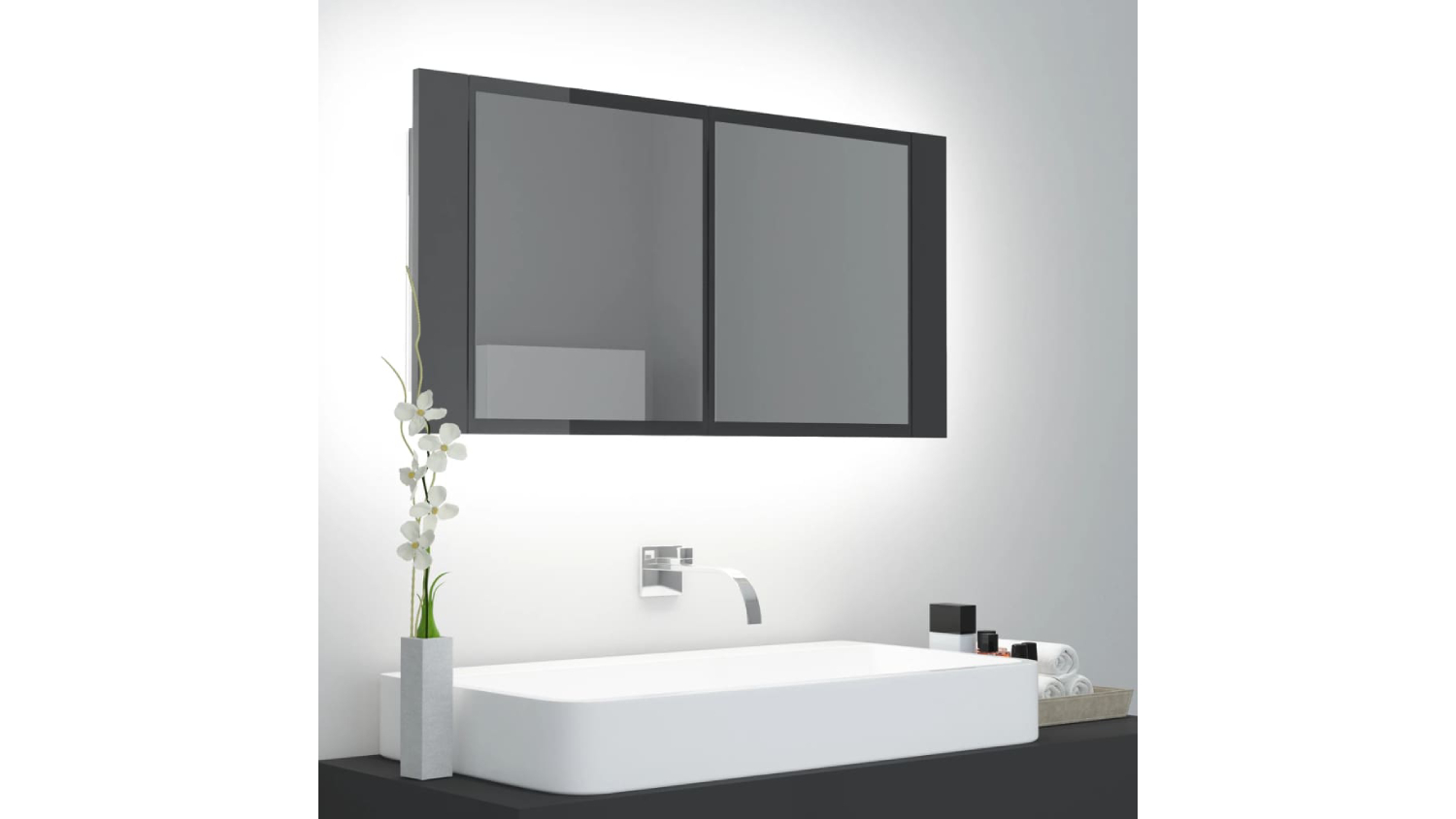NNEVL LED Backlit Bathroom Mirror Cabinet 90 x 12 x 45cm - Gloss Grey