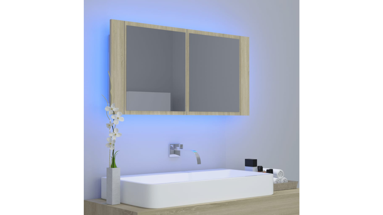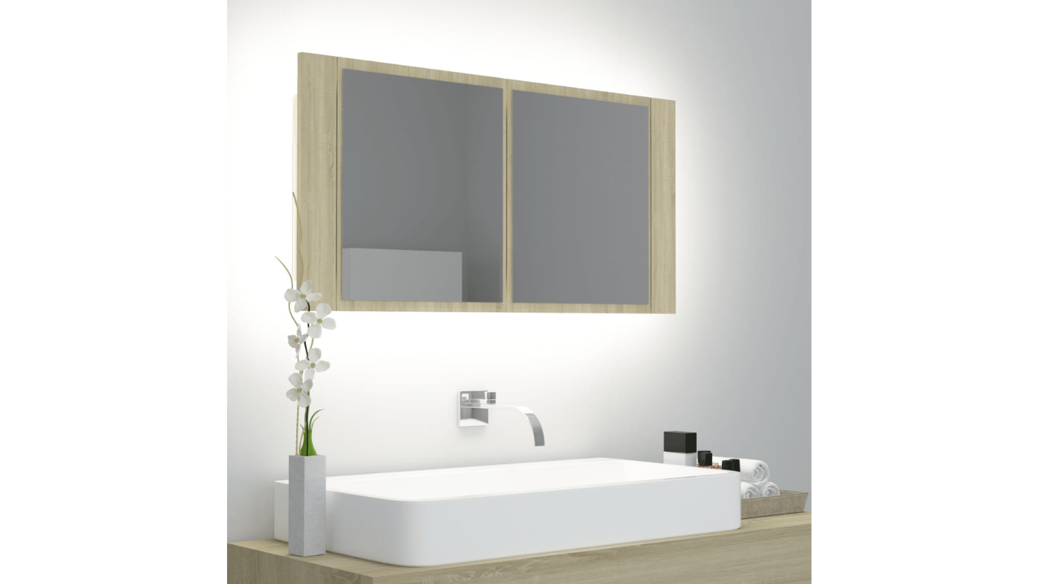 *NNEVL LED Backlit Bathroom Mirror Cabinet 90 x 12 x 45cm Sonoma Oak only. Other colours are sold separately.