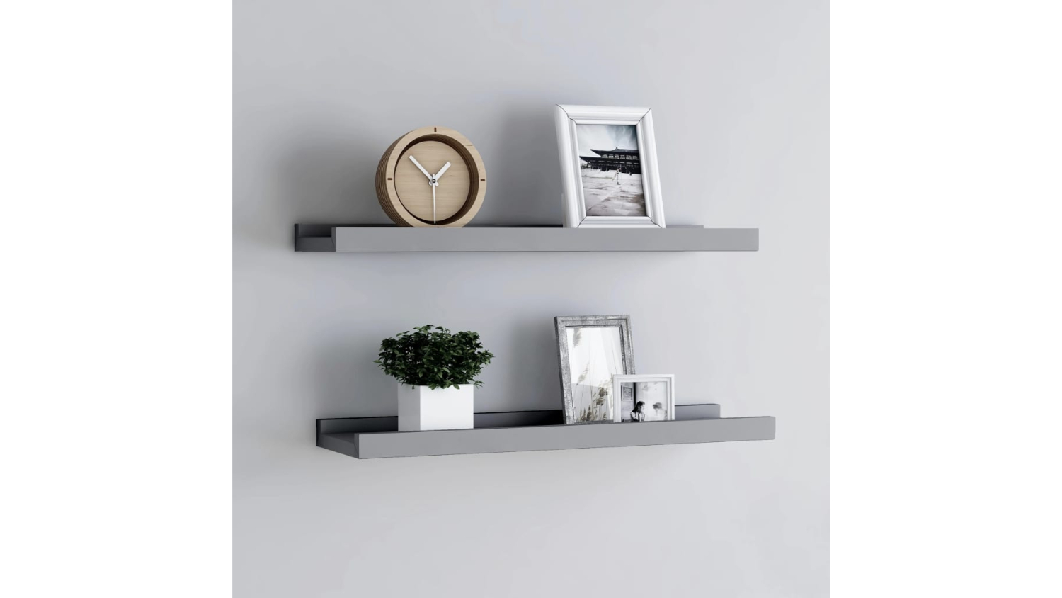 Transform your empty walls into a modern masterpiece with the NNEVL Ledge Wall Shelves 2pcs. Featuring a minimalist U-shaped design, these sleek wall-mounted shelves offer the perfect platform to showcase your favourite photos or decorative accents. Elevate your décor and make every wall a statement.