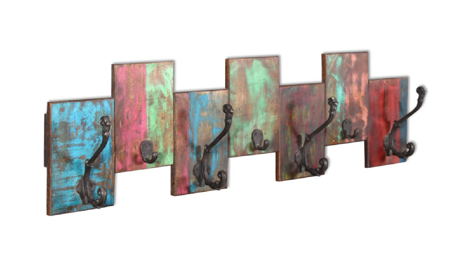 Vintage charm meets practicality in this NNEVL Wall-Mountable Coat Hooks. Made from solid reclaimed wood, this rack offers the perfect combination of stability, durability, and beauty. It also features an invisible mounting system, allowing you to neatly organise your coats, hats, bags, and scarves.
