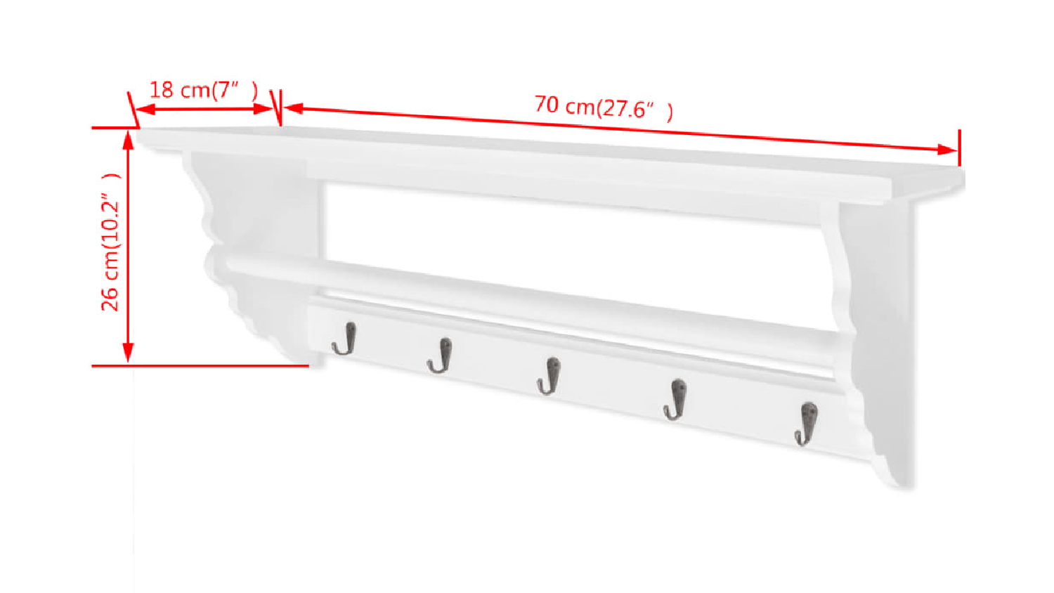 NNEVL Wall-Mounted Baroque-Style Coat Rack 70 x 18 x 26cm - White