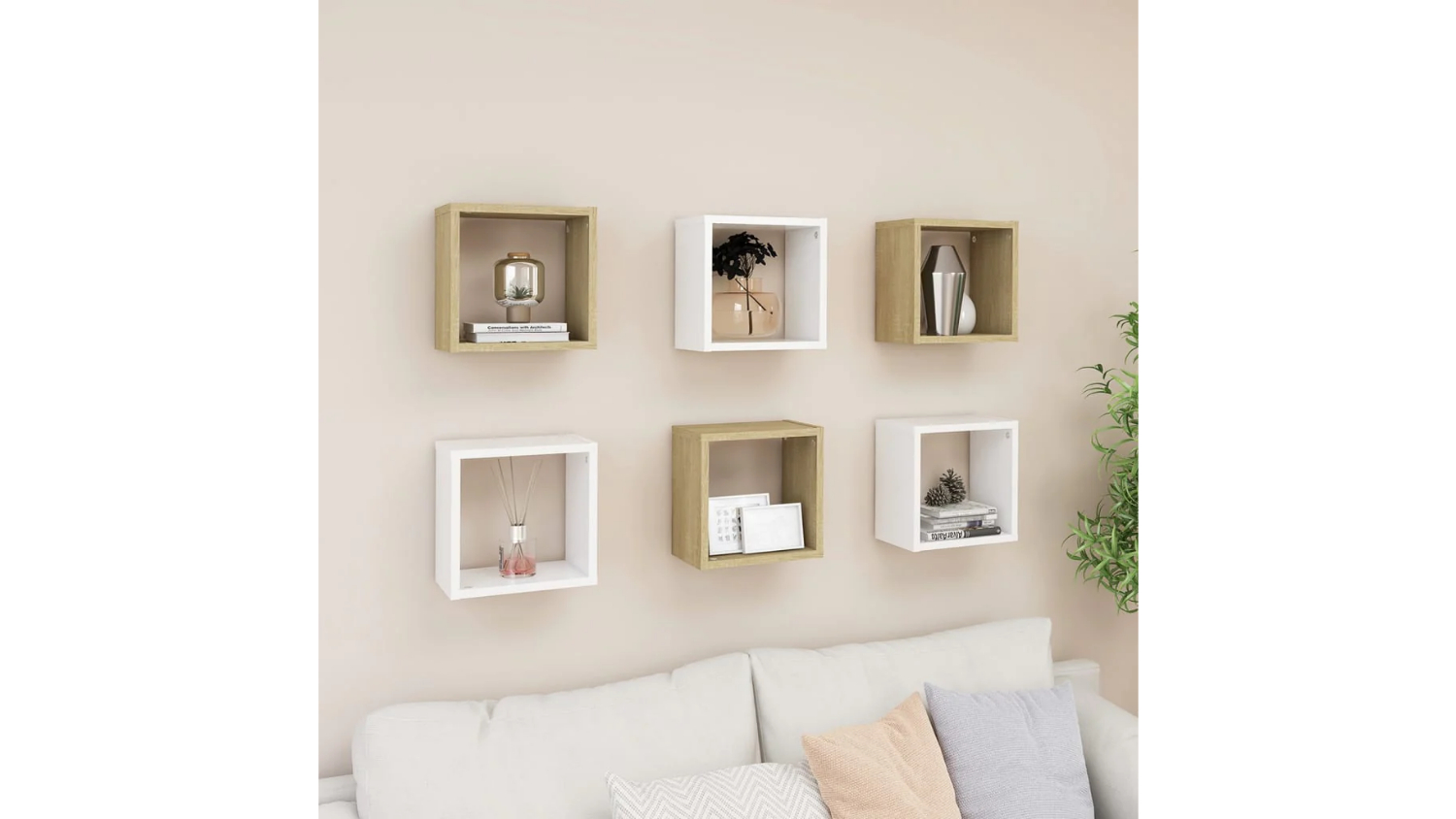 *NNEVL Wall Shelves Floating Cube 6pcs. 26 x 15 x 26 Sonoma Oak/White only. Other variants are sold separately.