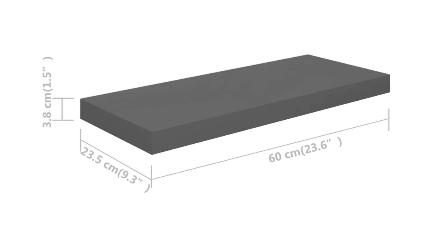 NNEVL Floating Ledge Wall Shelves 2pcs. 60 x 23.5 x 3.8cm - Gloss Grey