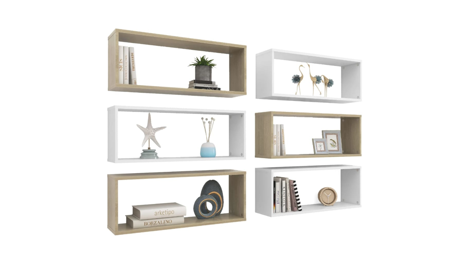 *NNEVL Wall Shelves Floating Rectangle 6pcs. 60 x 15 x 33cm Sonoma Oak/White only. Other variants are sold separately.