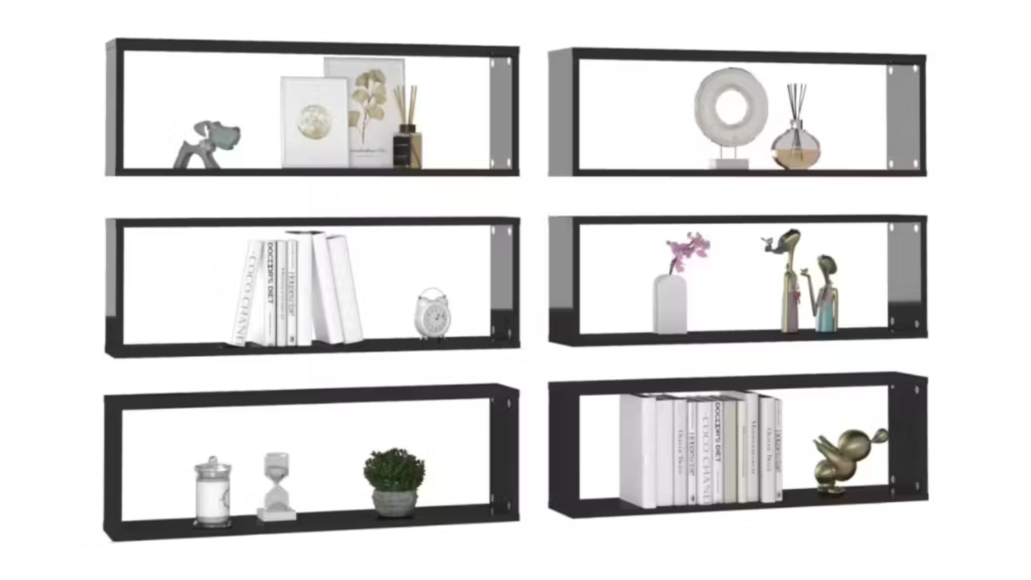 *NNEVL Wall Shelves Floating Rectangle 6pcs. 80 x 15 x 26.5cm Gloss Black only. Other variants are sold separately.