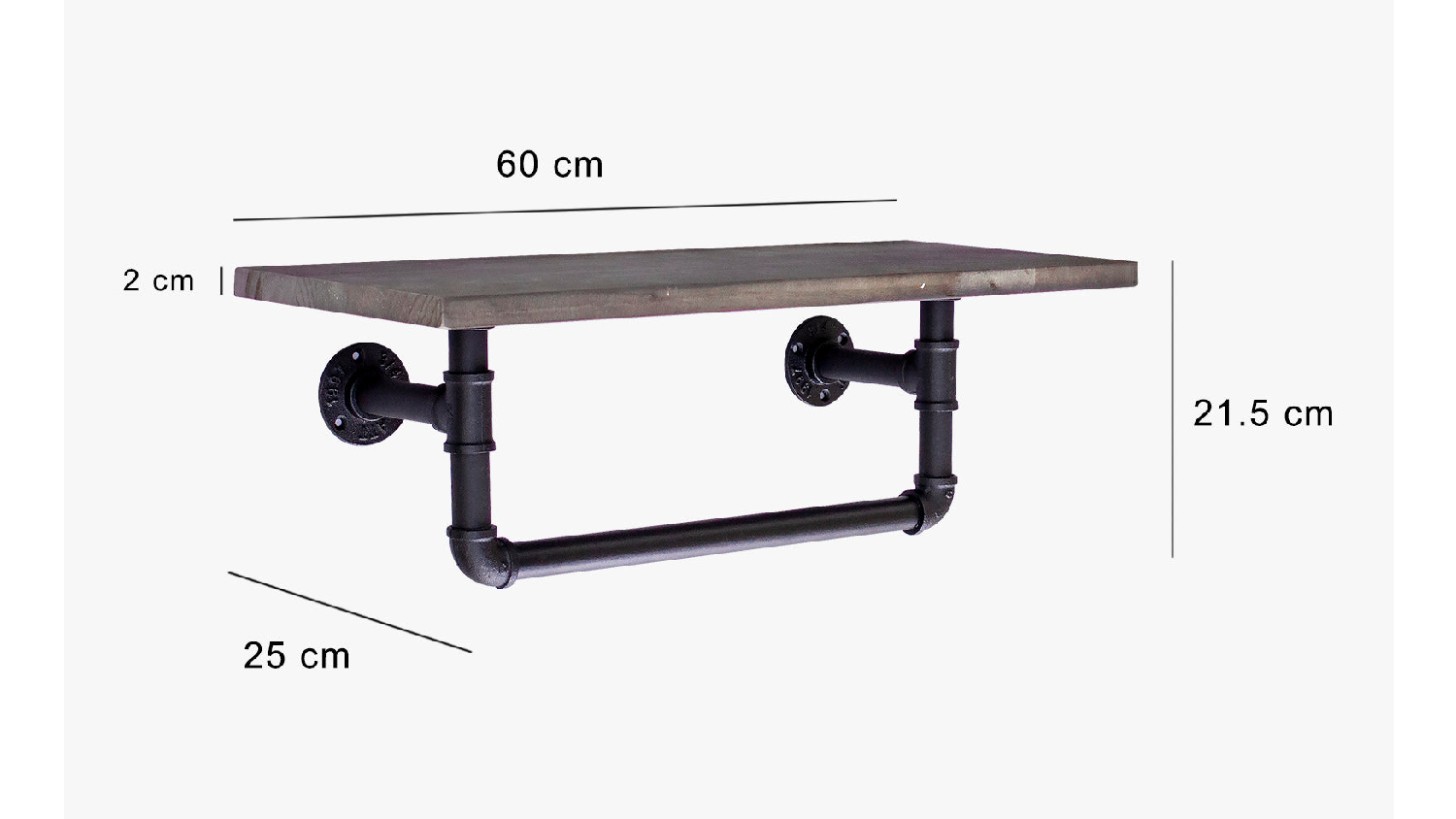 Discover the perfect blend of form and function with the TSB Living Industrial Pipe Shelf w/ Towel Rail. Crafted from resilient coated powder metal pipe and solid pipe wood, this shelf not only adds an industrial touch to your decor but also creates additional storage for your space.