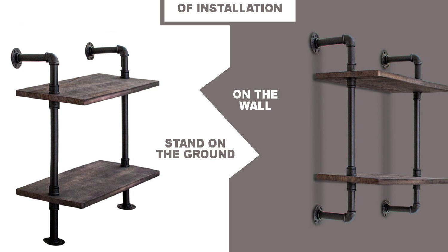 TSB Living 2 Tier Industrial Pipe Shelf