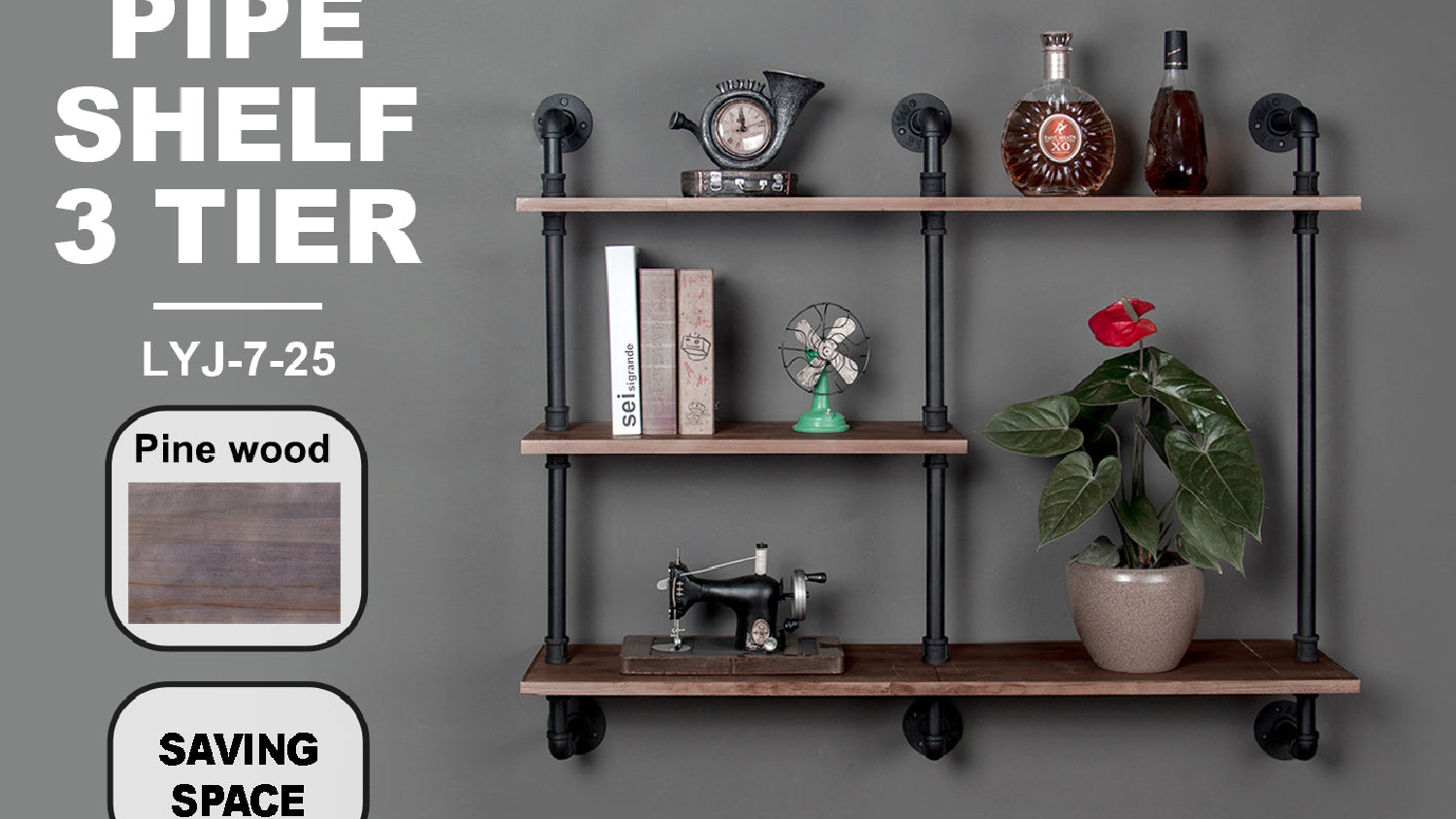 TSB Living 3 Tier Double Wide Industrial Pipe Shelf
