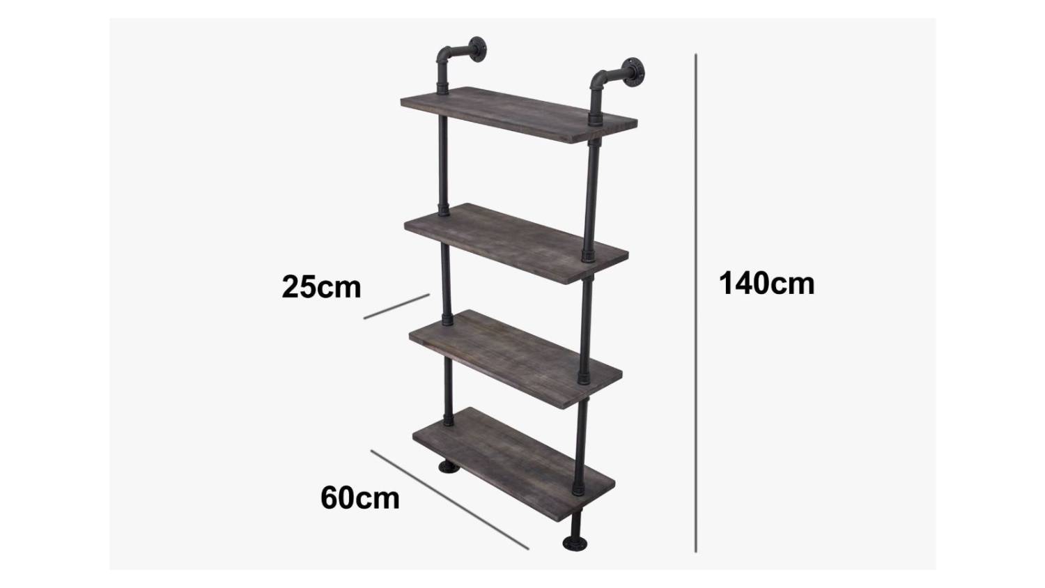 Revamp your home with the TSB Living 4-Tier Industrial Pipe Shelf, a fusion of form and function. Crafted from dependable coated powder metal pipe and solid wood, this floating shelf serves as a storage solution and display space. It is ideal for different places, such as your kitchen, bathroom, living room, study, and even entrance.