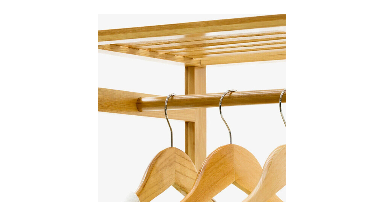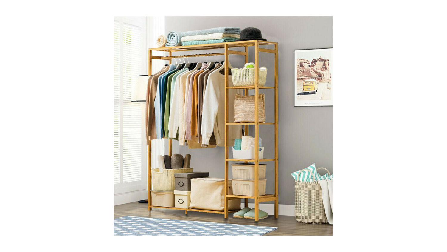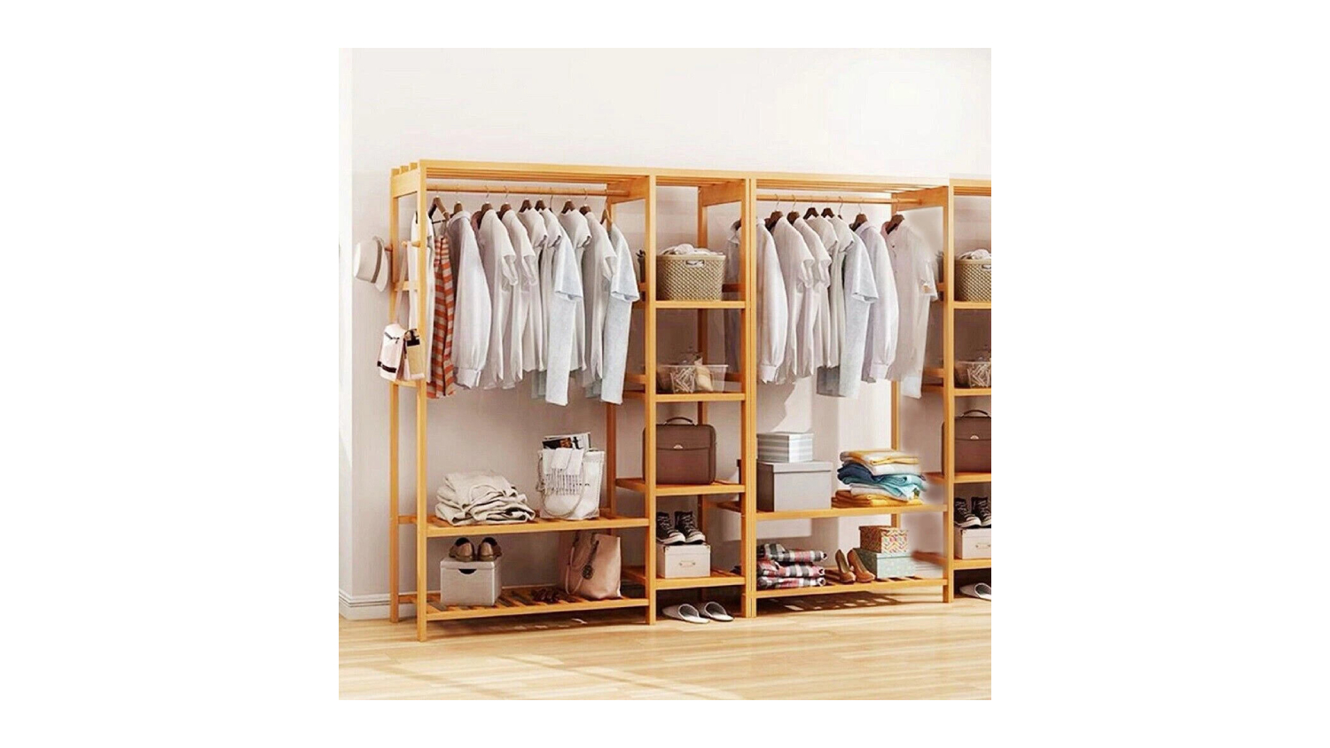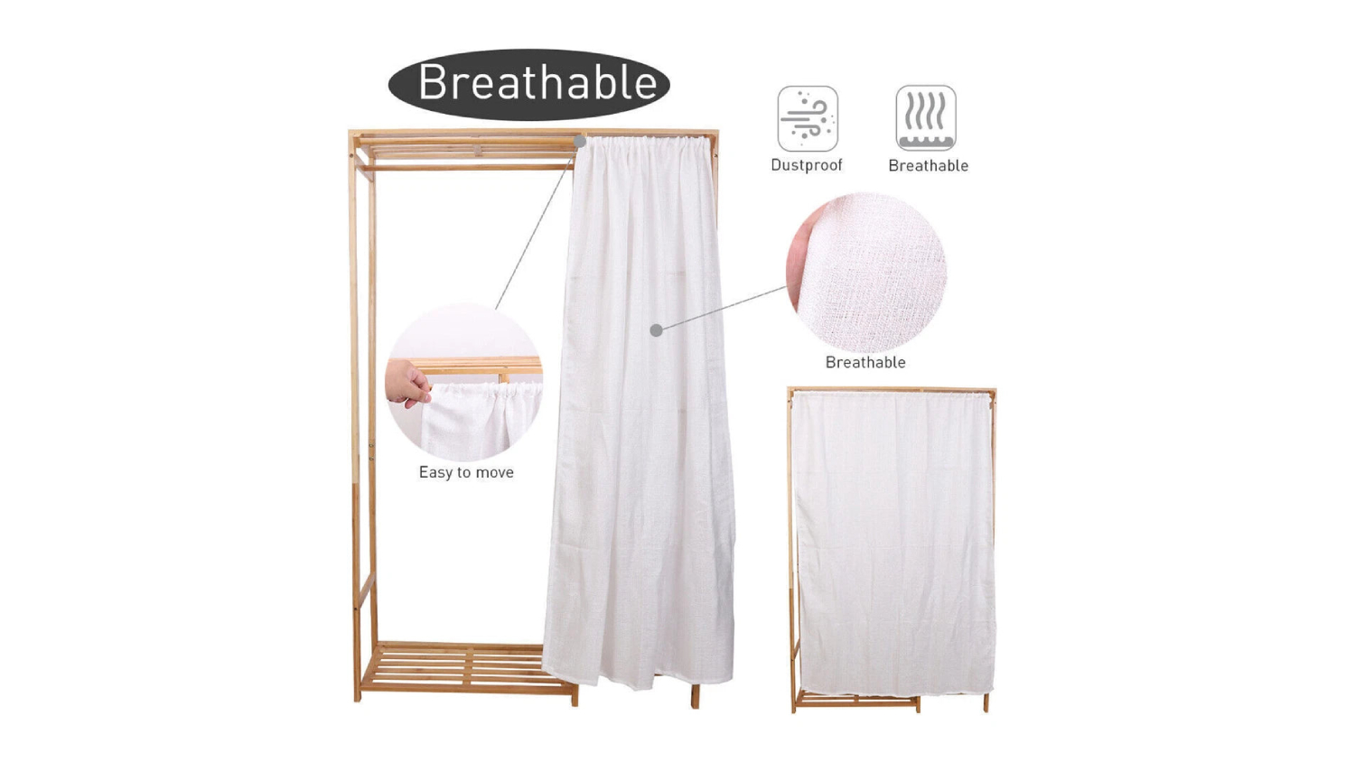 Achieve the look of an open wardrobe with the option for instant tidiness. The Pretty & Practical Large Bamboo Clothing Storage Rack 90 x 30 x 146cm includes a tailored curtain, allowing you to instantly conceal clutter and maintain a minimalist environment. It also highlights four shelves, perfect for organising various items.