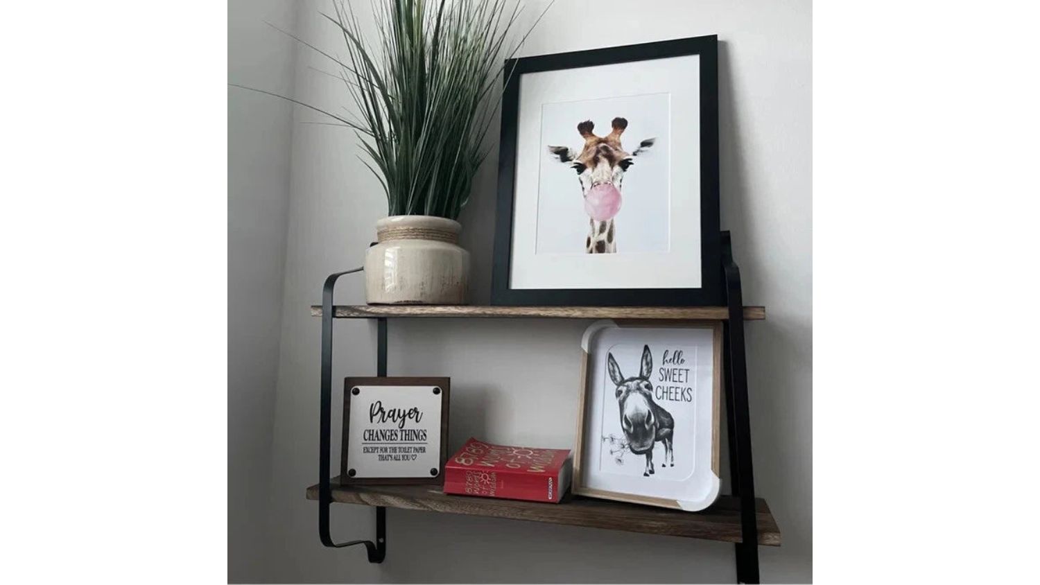 Efficiently use your empty wall space with the Pretty & Practical Wall-Mountable Floating Shelf. This unit features rustic pine wood and a black iron frame that effortlessly blends with any décor. Each layer boasts a strong 10 kg loading capacity, and the metal rail provides extra protection. It efficiently utilises empty wall space without compromising your floor area.