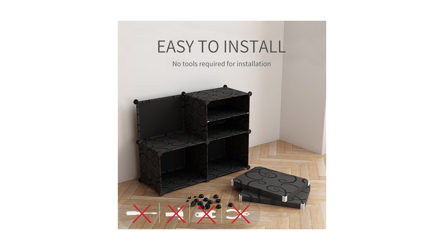 *We recommend using a pair of gloves to protect the hands from getting scratched or harmed while attaching the panels with the connectors. An anti-dumping accessory is provided to avoid shelf dumping by kids, making it safer when there is a kid around.